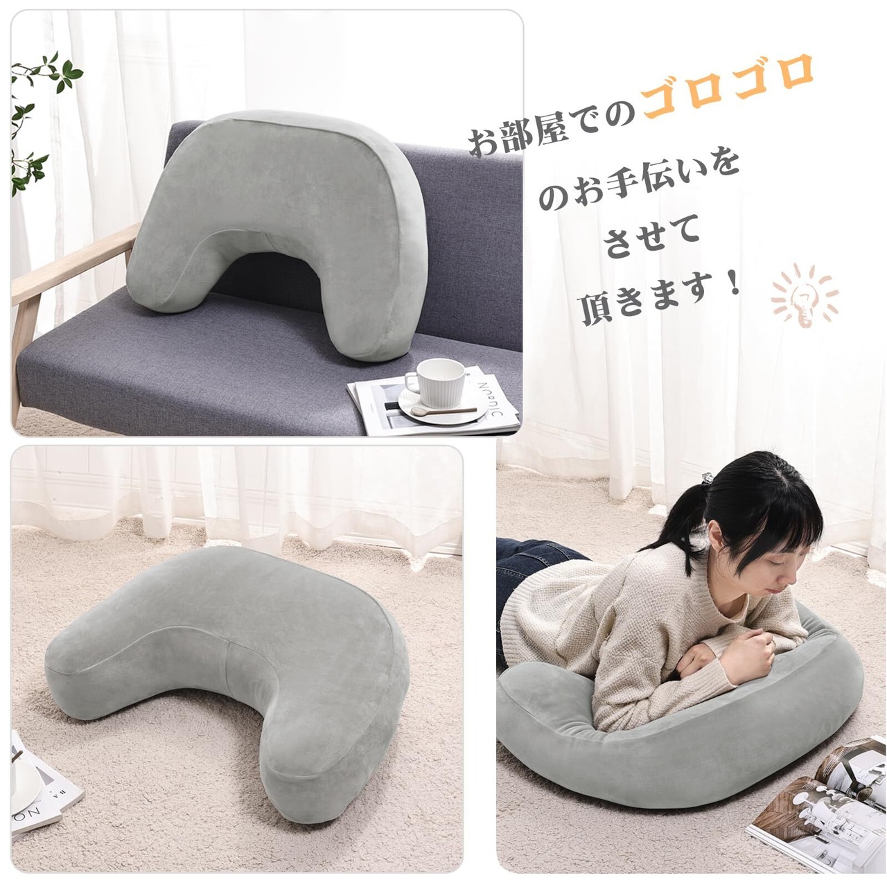 Baibu Home クッション 肘置き 膝上 クッション ゲーム アームレスト 厚め もちもち ふわふわ 背もたれ ヘアサロン 読書 授乳 テレビ 鑑賞 サポートクッション カバー洗える U字型 グレー