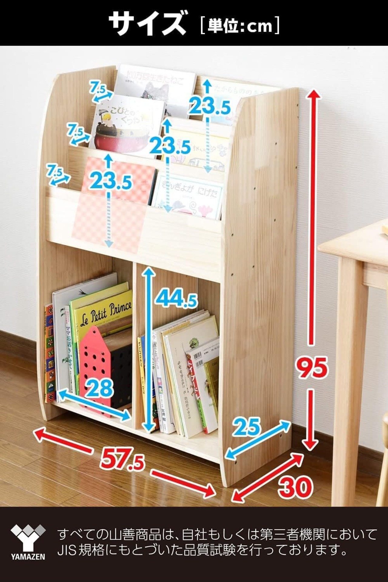 山善(YAMAZEN) 絵本棚 絵本ラック (大容量) 表紙がみやすい 丸みのある角 幅60×奥行30×高さ95㎝ 天然木 組立品 TMR-9560(NA) キッズ