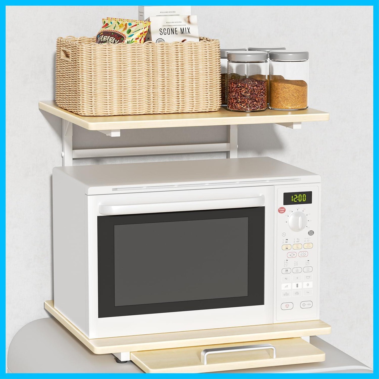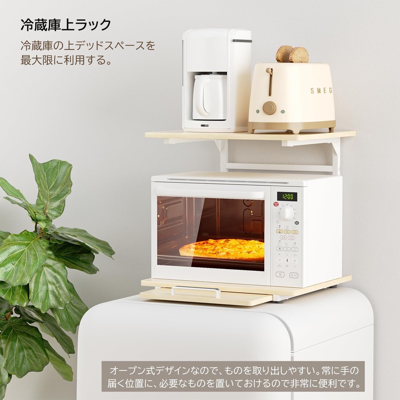 【新着商品】UTIMIU 冷蔵庫上ラック レンジラック スライド棚付き キッチン 収納ラック 食器棚 幅47.5×奥行43.5-69.5×高さ45cm 電子レンジラック 冷蔵庫上棚 隙間収納 組立品