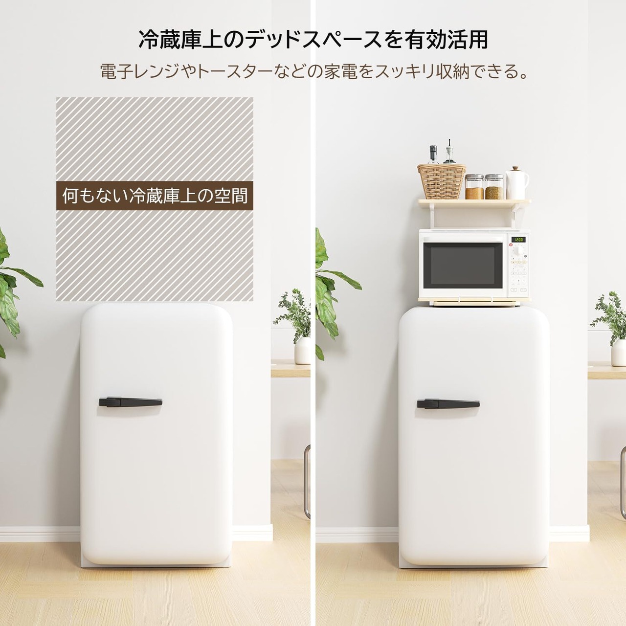 【デッドスペースを活用】キッチンラックは小型冷蔵庫上のデッドスペースを活用でき、冷蔵庫上の無駄な空間を便利な収納スペースに変わり、家電/器具や小物を収納まとめて収納できます。冷蔵庫上だけではなく、デスク上、キッチン等のでも幅広く利用でき、お部屋の収納スペースを広げられます。