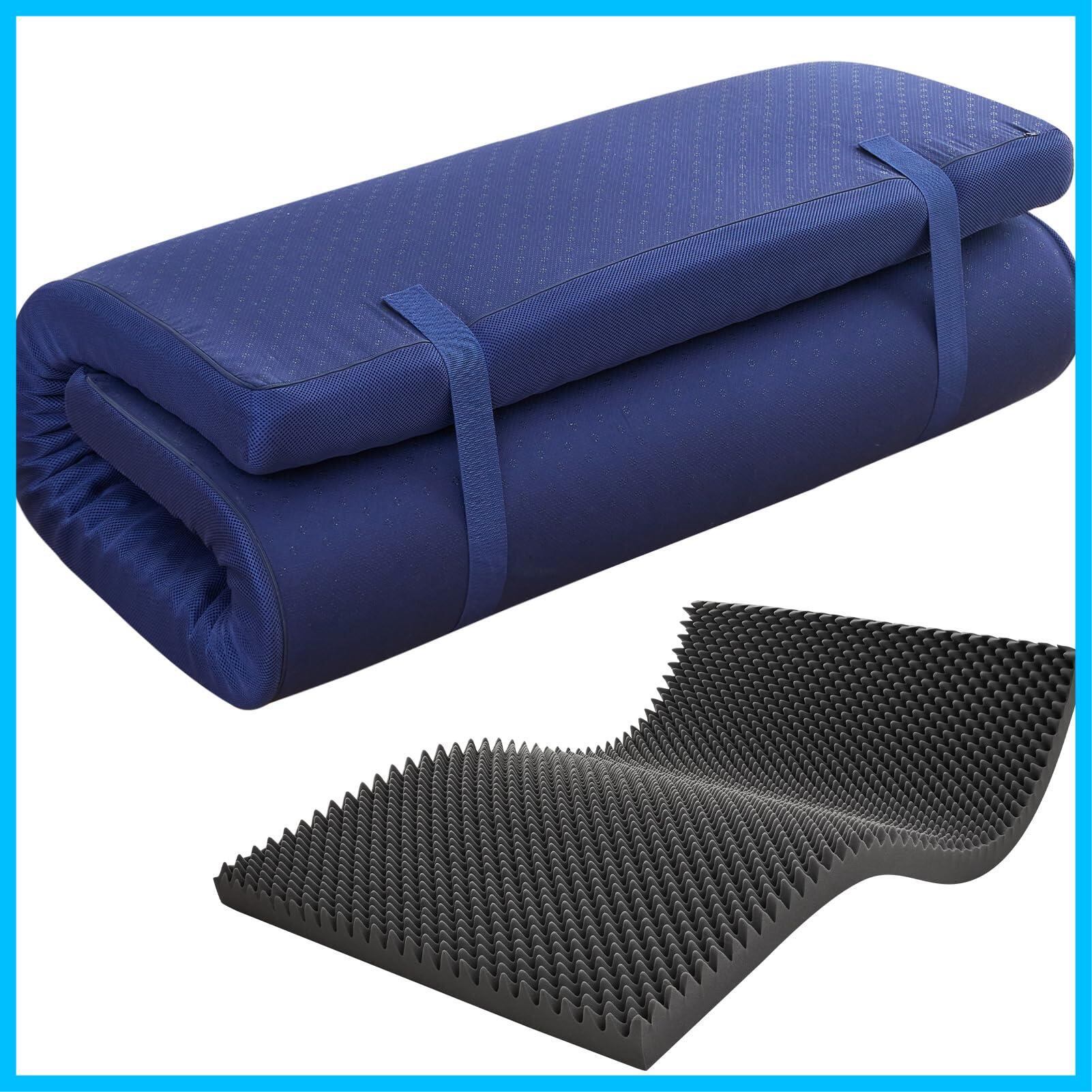 【特価商品】Mensu 高反発マットレス シングル 極厚10㎝ ベットマット 凹凸加工 体圧分散 敷布団 マットレス 防ダニ 抗菌防臭 おりたたみマットレス コンパクト カバー洗える 97 x 195㎝ ネイビー