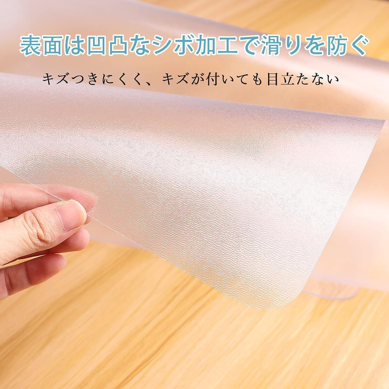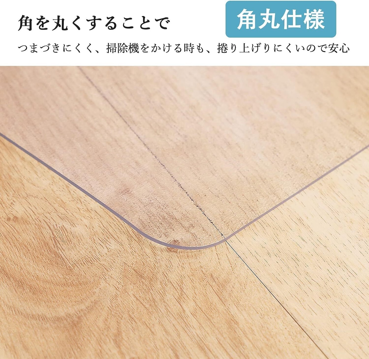【自由カットOK】サイズ:幅100×奥行120×厚み0.15cm、必要に応じてハサミで好きな形にカットできます。pvcチェアマットはインテリアに馴染みやすくてフローリングや畳が溶ける半透明タイプなので、圧迫感がなくお部屋の雰囲気を損なうことなく、どんなお部屋やインテリアも違和感なくマッチします。チェアにはもちろん、キッチンや食卓、ペットのケージ周りなど幅広く使えます!ヒント: 記載されているサイズは規定値です。個体により若干の誤差((1-2cm))が発生致しますので、あらかじめご了承下さい。