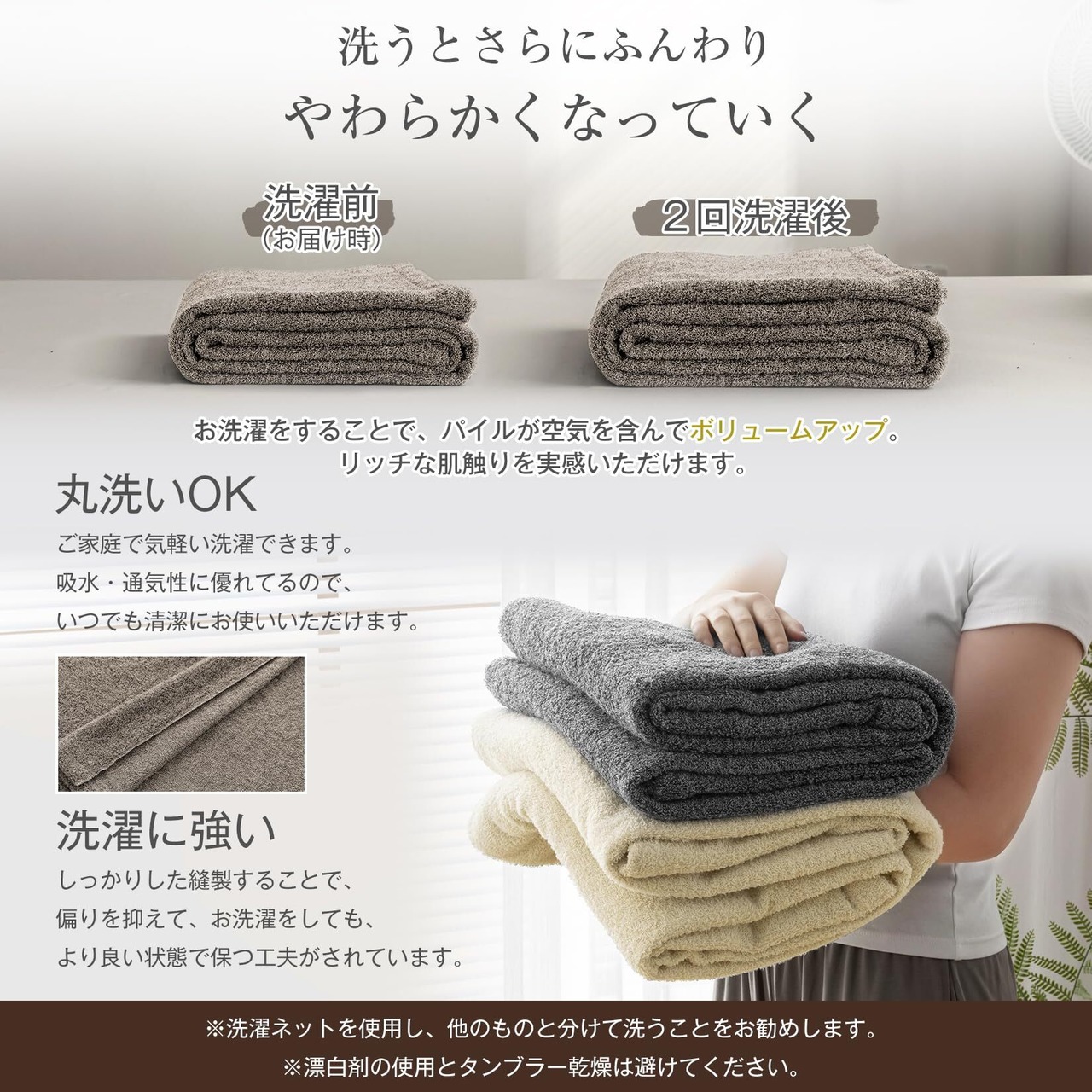 【一年中使えるほどよい厚手感】適度な厚さでふんわりと肌を包み込みます。適度な弾力とボリューム感を兼ね備えており、シーツとして敷いても、かけ布団としてもお使いいただけます。素肌で心地よさを実感できる寝具として、オールシーズンおすすめです。【様々なシーンに活躍】日常生活のさまざまなシーンで活躍するタオルケット。用途や家族の人数に合わせて、色違いで揃えるのもおすすめです。