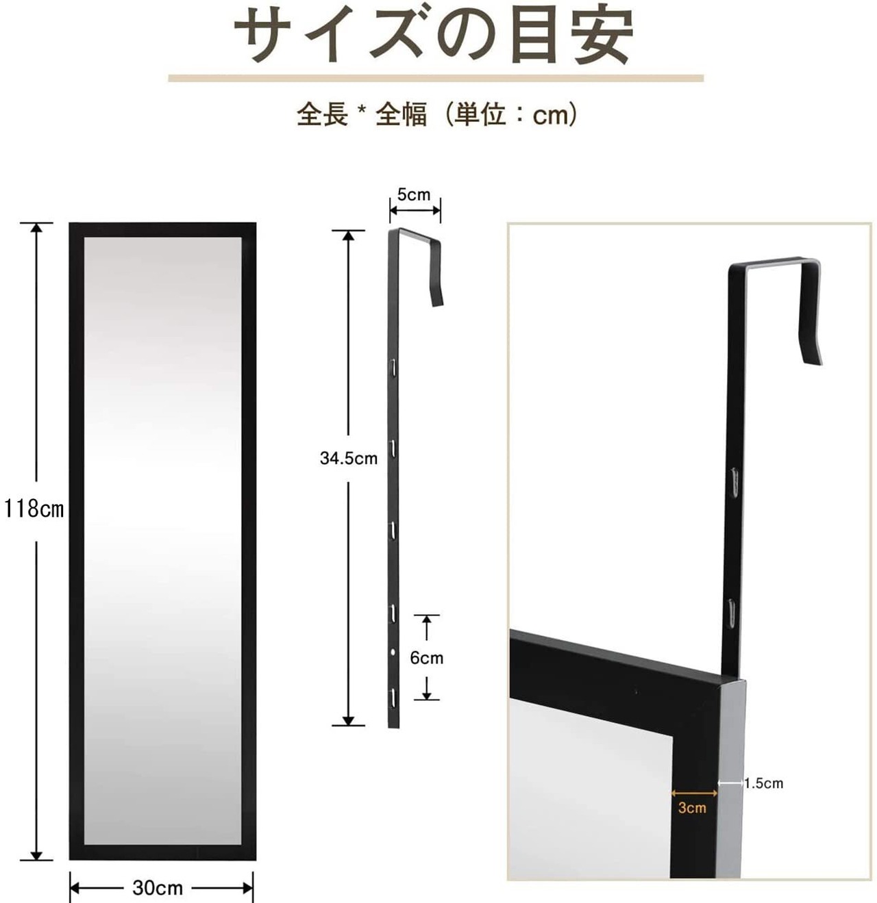 シンプル・おしゃれ・モダンなドア掛けミラー! 北欧・塩系インテリアに最適! スリム・省スペースですが、全身をきれいに映す吊り下げタイプの姿見ミラーです。