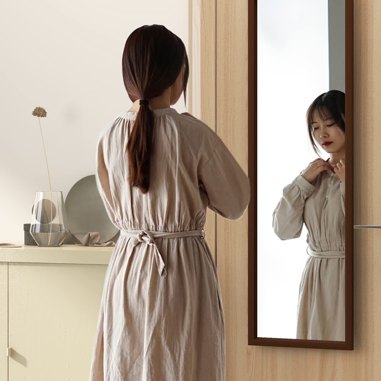 ミルオ君の鏡工房 ドア掛けミラー 姿見 壁掛け鏡 高さ調節可 工具不要 飛散防止 HD鏡面 おしゃれ (ブラウン, 118*30CM)
