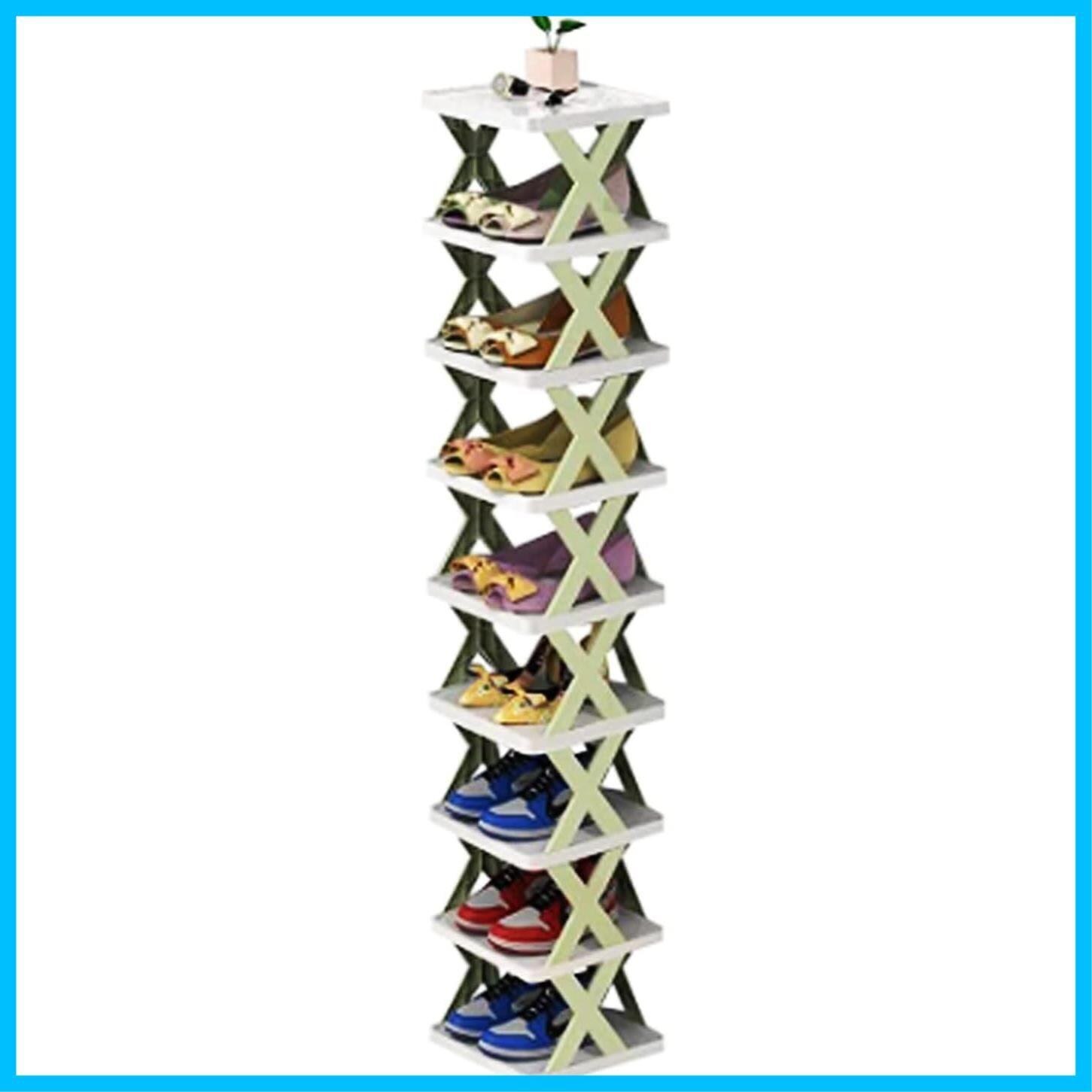 【在庫セール】シューズラック 省スペース 組み立て式 靴箱 収納 折り畳み式 靴収納ラック 分割可能 大容量 つっぱり 靴収納ボックス 組み立て式 下駄箱 収納 安定 軽量 折りたたみ式 靴棚 耐久性 スリム シューズボックス 狭い 玄関収納 下駄箱 スニーカー ヒール サンダル 長靴 コンパクト (グリーン, 9層)