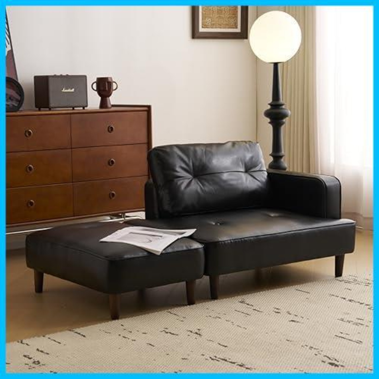 オーエスジェイ(OSJ) ソファ ソファー 2人掛け ソファー オットマン付き カウチソファー 2人掛け 幅150cm 木脚外し可能 コンパクト ローソファ コンパクト おしゃれ ひとり暮らし PUレザ カウチソファー ソファーベッド 2人掛け