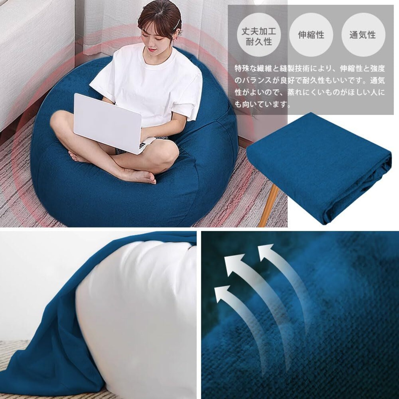 ビーズクッションカバー カバーのみ 人をダメにするクッションカバー ポケット付き カバー取り外し 洗濯可能 付け替えカバー おしゃれ 無地 北欧風 四季適用 座布団カバー 多機能(ブルー 100*120cm)
