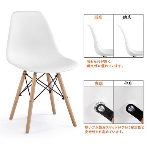 Yaheetech ダイニングチェア イームズチェア 4脚セット 食卓椅子 リビングチェア サイドチェア シェルチェア 椅子 アームレス 背もたれ付き 人間工学 木製脚 組立簡単 軽量 多用途 キッチン 待合室 会議室 ホテル用 おしゃれ 北欧 ホワイト 46.5x54x81.5cm(4個セット)