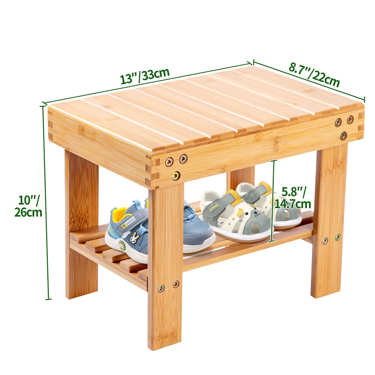 VaeFae 子供のための竹の小さなシートスツール、フットレストシェービングスツール、収納棚、耐久性のある軽量とアンチスリップ