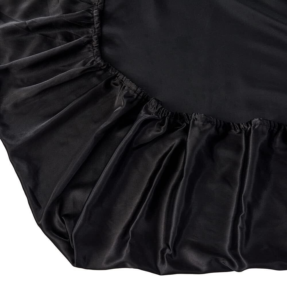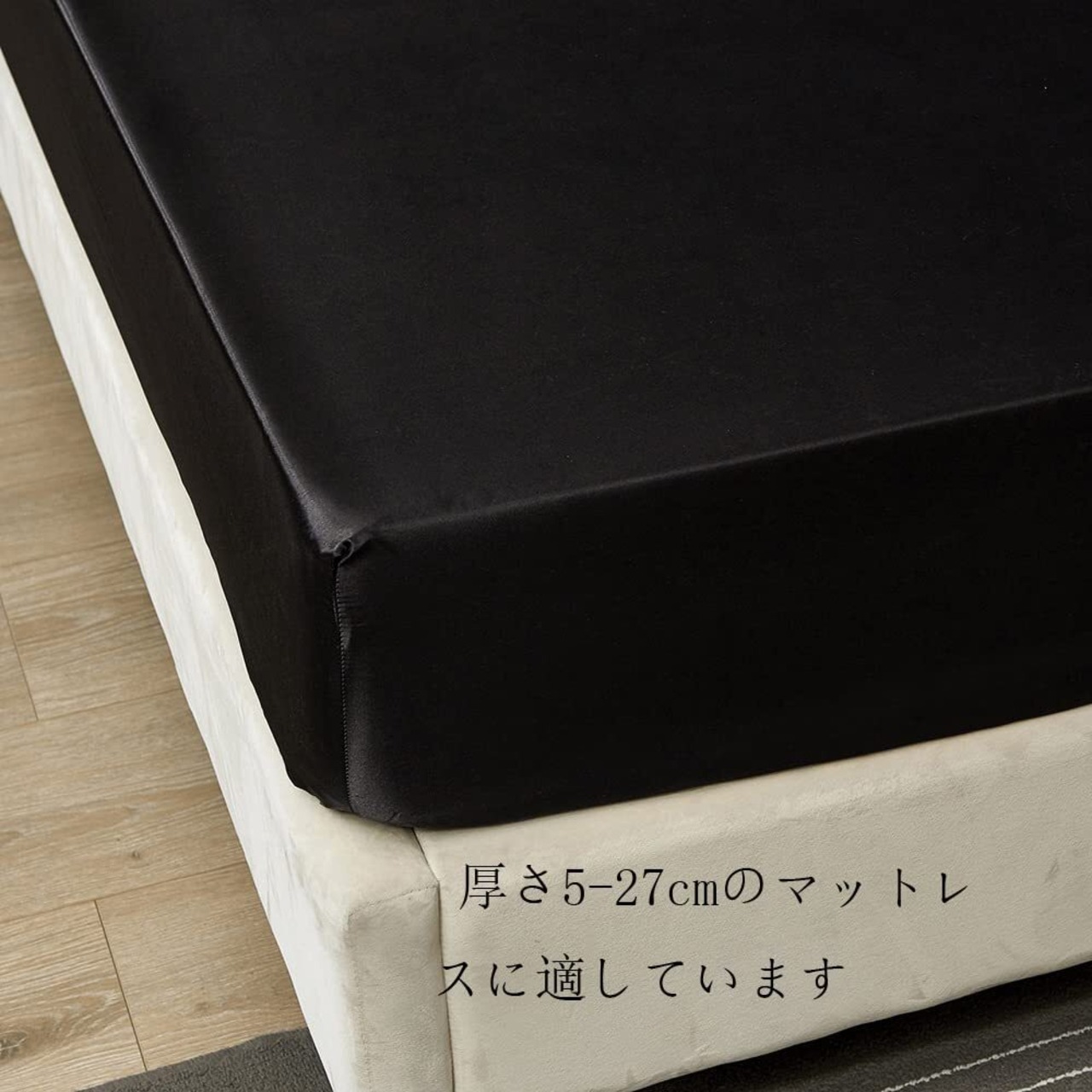 寝具カバーセット サテン ツルツル シルクみたい光沢 布団カバーセット 掛け布団カバー シーツ ボックスシーツ 枕カバー 洗い替え 速乾タイプ (セミダブル ・ 4点セット ・ブラック)