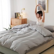 【セット内容・仕様】「掛け布団カバー・170x210cm(1枚)」:片側に丈夫な170cm長さのファスナーを使用、布団留め紐8ヶ所付き。無地で色は派手すぎずにどんなインテリアにもピッタリと雰囲気を合わせます。