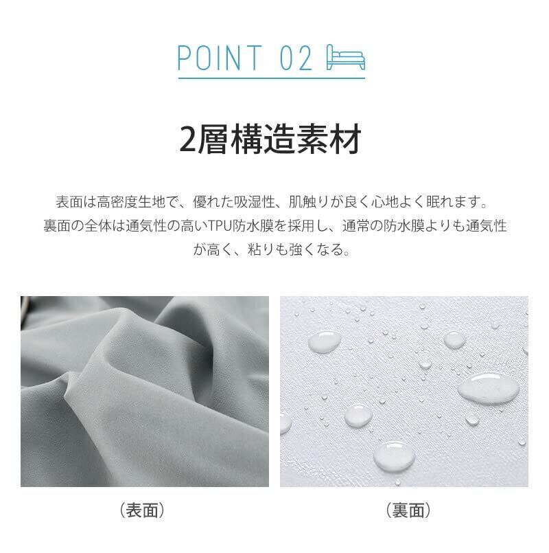 【2層構造素材】表面は高密度生地で、優れた吸湿性、肌触りが良く心地よく眠れます裏面の全体は通気性の高いTPU防水膜を採用し、通常の防水膜よりも通気性が高く、粘りも強くなる。