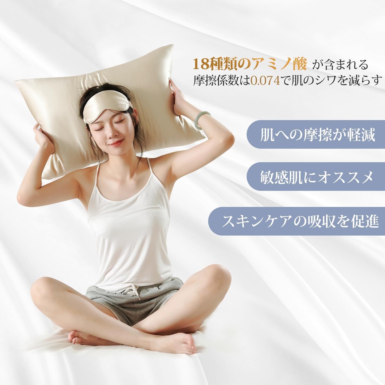【美容・美髪の秘訣】シルク繊維は人間の皮膚に近い18種類のアミノ酸から構成されており、肌との親和性が高く保水性や抗酸化作用に優れています。シルク製の枕カバーは、就寝時の乾燥や寝返りなどで起こる髪の摩擦によるダメージを最小限に抑え、翌朝には髪の毛がいつもよりサラサラに~!寝癖や切れ毛や肌荒れなどの改善に役立ちます。