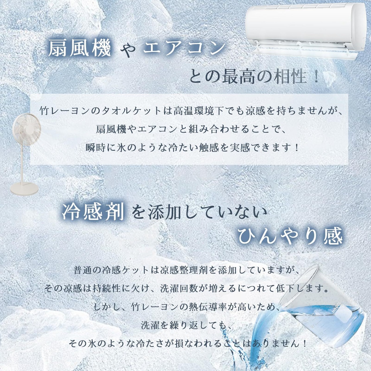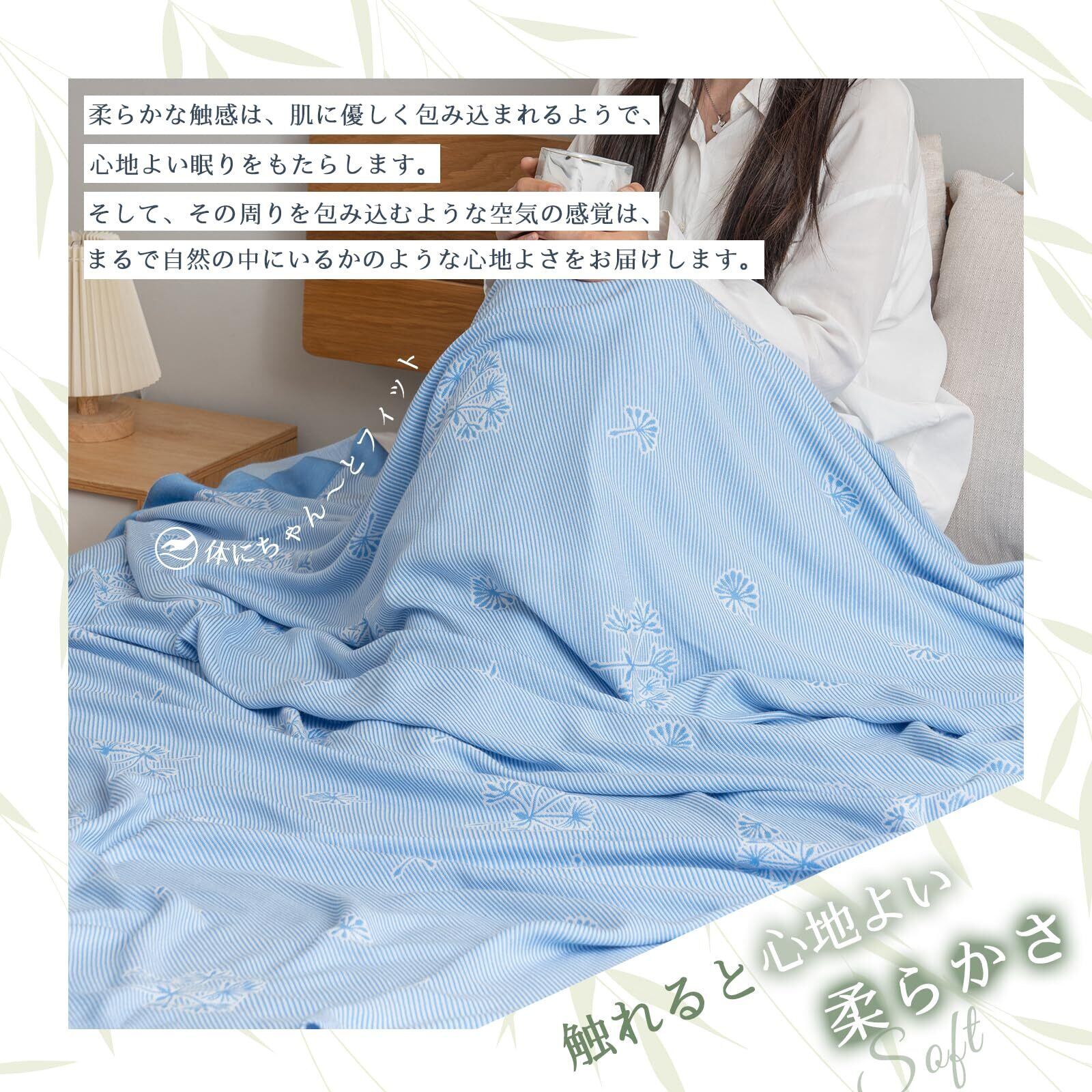 【夏にピッタリ、エアコンとの最高の相性】竹レーヨンのタオルケットは高温環境下でも涼感を持ちませんが、扇風機やエアコンと組み合わせることで、瞬時に氷のような冷たい触感を実感できます。さらに、竹レーヨンの熱伝導率が高いため、洗濯を繰り返しても、その氷のような冷たさが損なわれることはありません。
