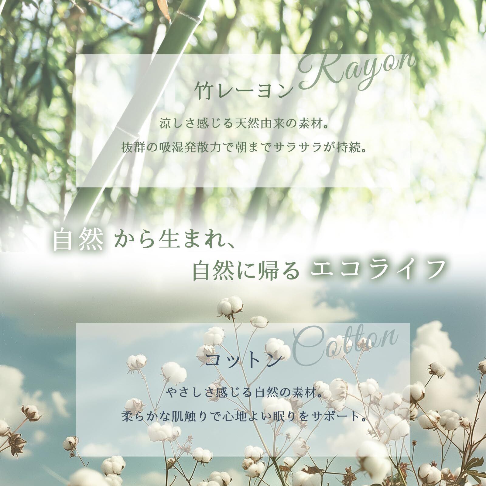 【さらなる快適さ、自然なリラックス】竹レーヨンとコットンの組み合わせは、優れた吸水性を誇ります。竹レーヨンは天然の抗菌成分を含んでおり、通気性にも優れ、ダニの繁殖を防ぎます。さらに、抗菌効果により、臭いの発生も抑制します。清潔で快適な眠りをお届けします。