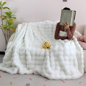 ラグジュアリーウォームブランケット カジュアル毛布 高級ソファ毛布 トスカーナ風 寝室用 ソファー用 大判 フェイクラビットファー ショート起毛 軽贅沢 毛布 柔らかい 暖かい 毛布 寝室