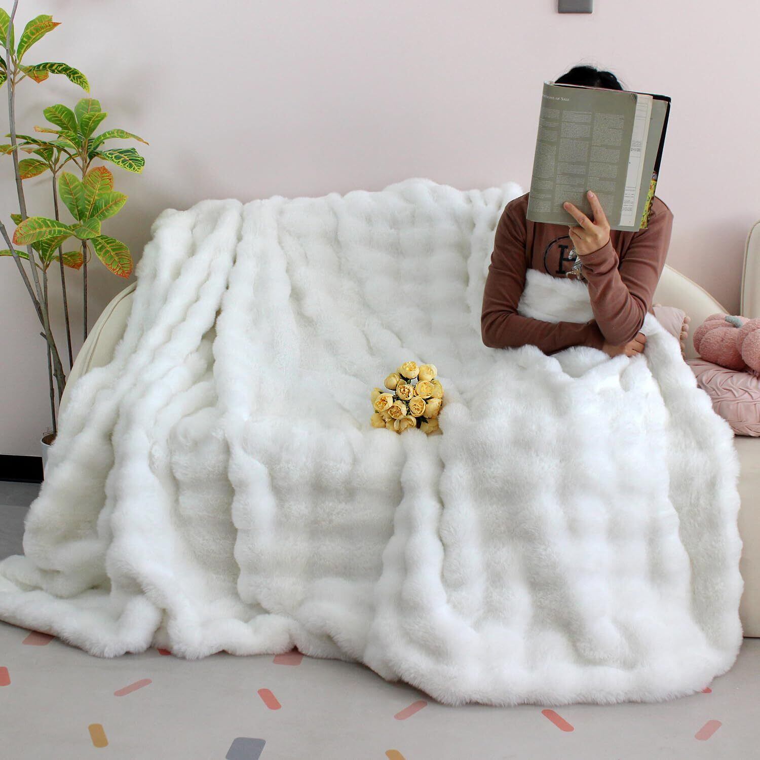 【数量限定】ラグジュアリーウォームブランケット カジュアル毛布 高級ソファ毛布 トスカーナ風 寝室用 ソファー用 大判 フェイクラビットファー ショート起毛 軽贅沢 毛布 柔らかい 暖かい 毛布 寝室