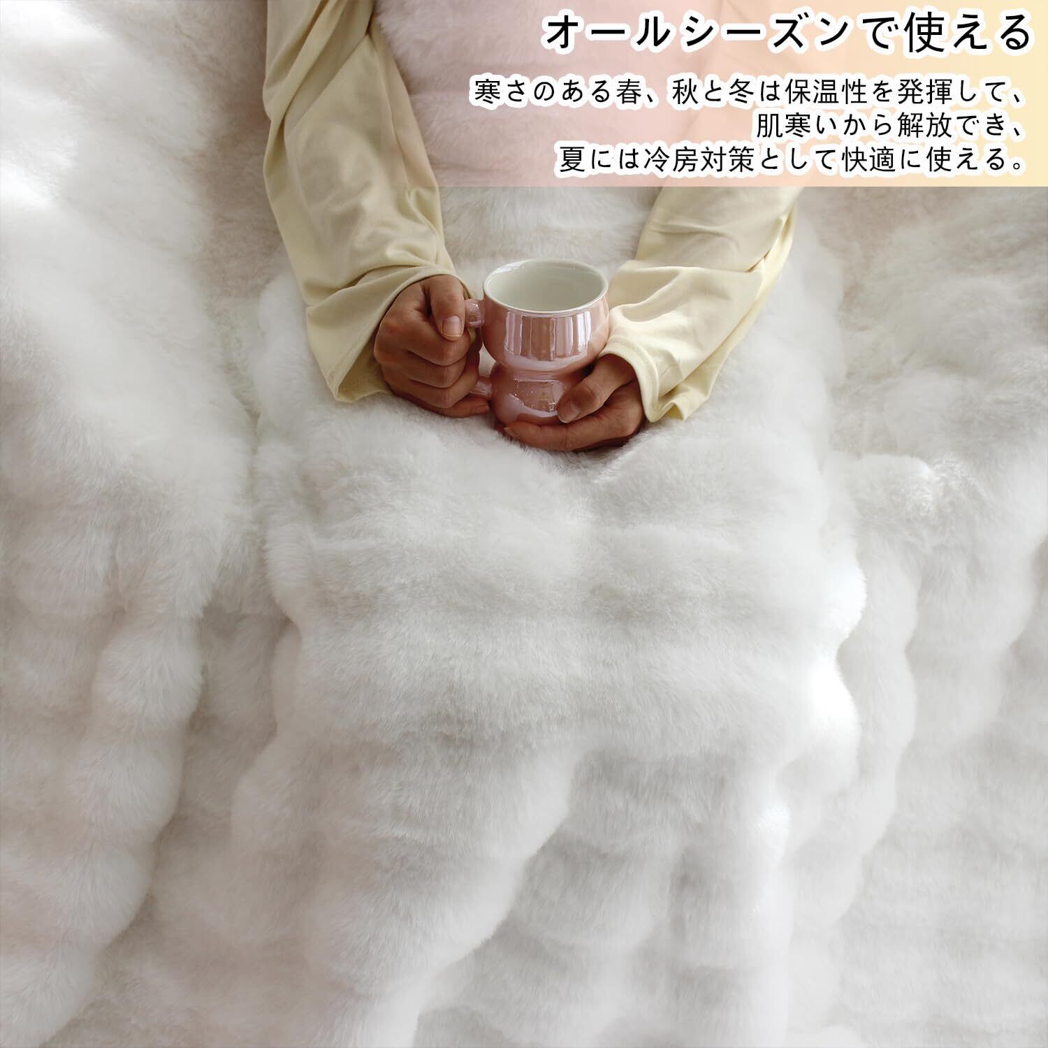 【超やわらかい毛布】うさぎの毛皮のように柔らかくふわふわブランケット、ふわっと軽くやわらかい肌触り、柔らい感触を体に感じます。触り心地も最高なふわふわ生地、圧迫感もない、膝や体にかけてふわふわで気持ちいいです。吸湿発熱わたが、寝ている間の汗を吸ってくれるためムレにくく、保温性にも優れている、快適に安眠できます。