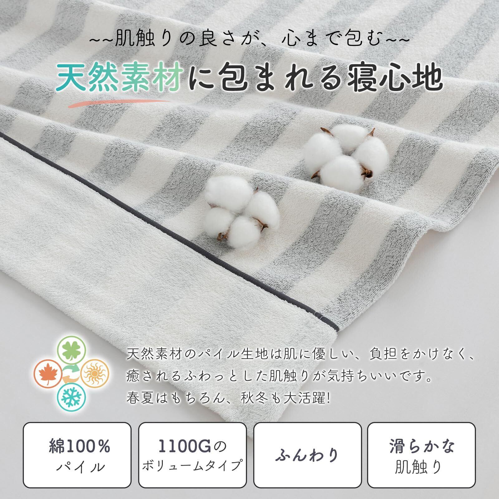 【コットン100%の肌触りでいい寝心地】天然コットン100%の糸を贅沢に使用し、天然素材のパイル生地は肌に優しい、負担をかけなく、天然繊維に包まれる寝心地です。ボリュームがあり、ふんわり滑らかな肌触りとなっております。厚手タイプで春夏は1枚で、秋冬は掛け布団と掛け合わせて、オールシーズンお使いになれます。環境にも人体にもやさしい天然素材で作られため、赤ちゃんや敏感肌の方にも安心してご使用いただきます。