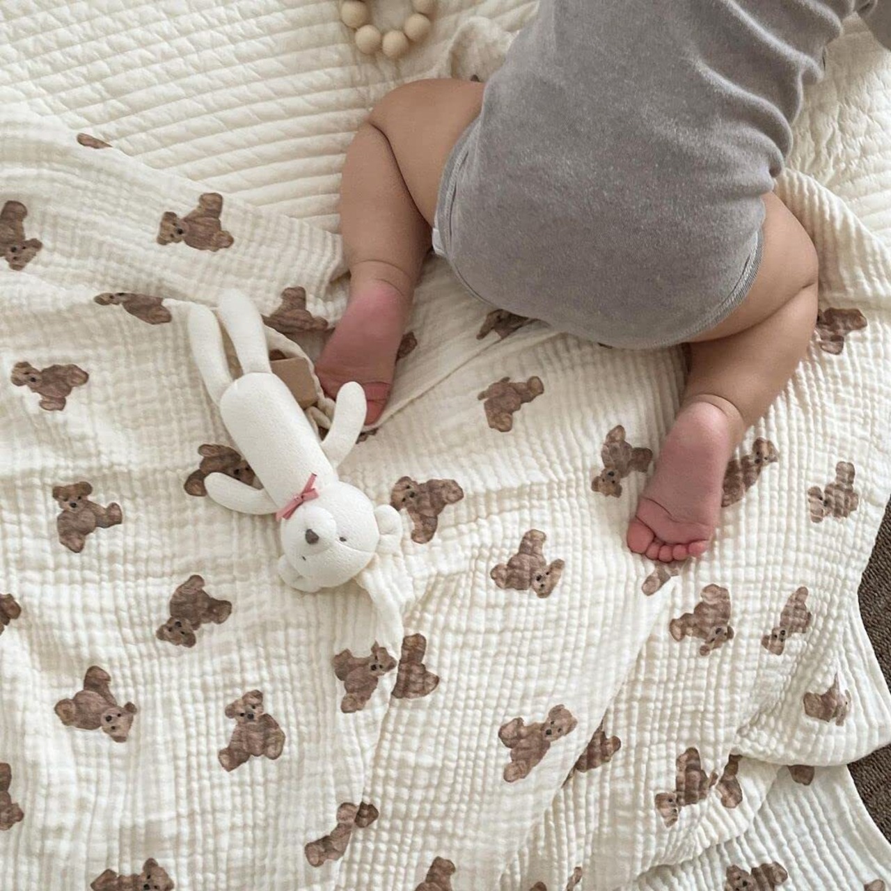 Seiwaraku タオルケット ガーゼケット くまさん 子供 子どもケット お昼寝 おなかケット 沐浴ガーゼ 2重 綿100% ガーゼ 100*120