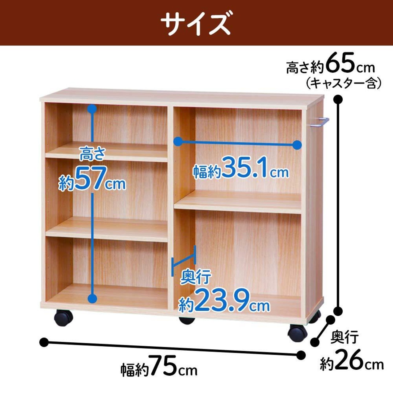 商品サイズ(cm):幅約75×奥行約26×高さ約65(取っ手を除く)
