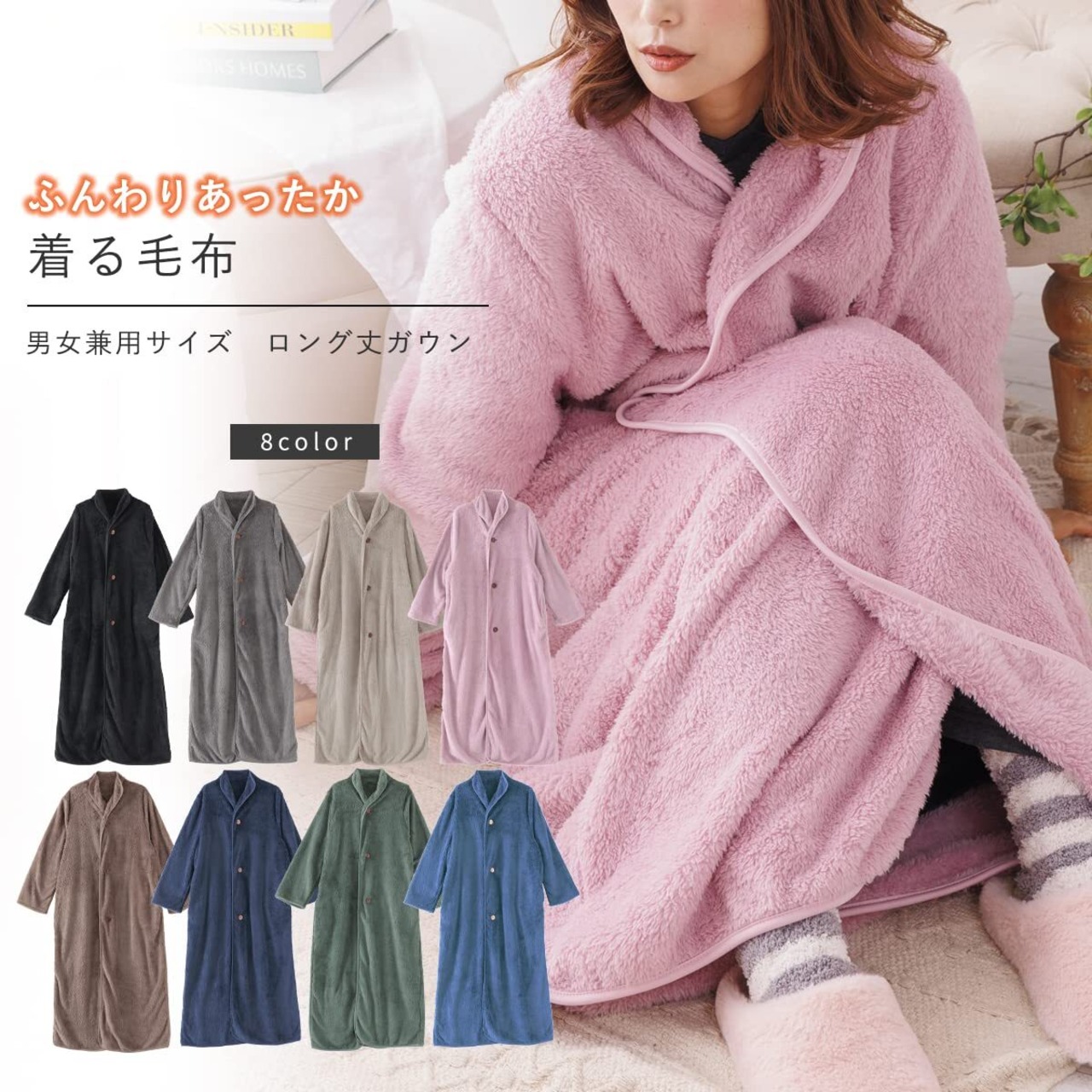 【新着商品】[アウニイ] 着る毛布 レディース パジャマ 冬 ルームウェア 部屋着 ブランケット ひざ掛け もこもこ シープボア もこもこパジャマ バスローブ ユニセックス 8198