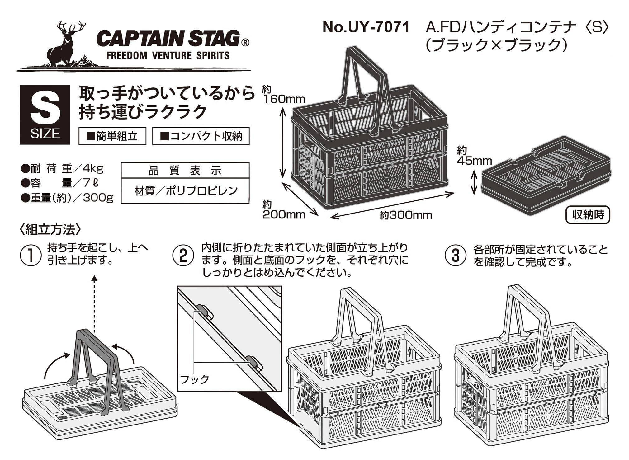 【特価商品】 キャプテンスタッグ(CAPTAIN STAG) 折りたたみ コンテナ カゴ フォールディング ハンディ コンテナ 取っ手付き 【S/M/Lサイズ】 【容量7L/15L/26L】 【ブラック/カーキ/オリーブ】