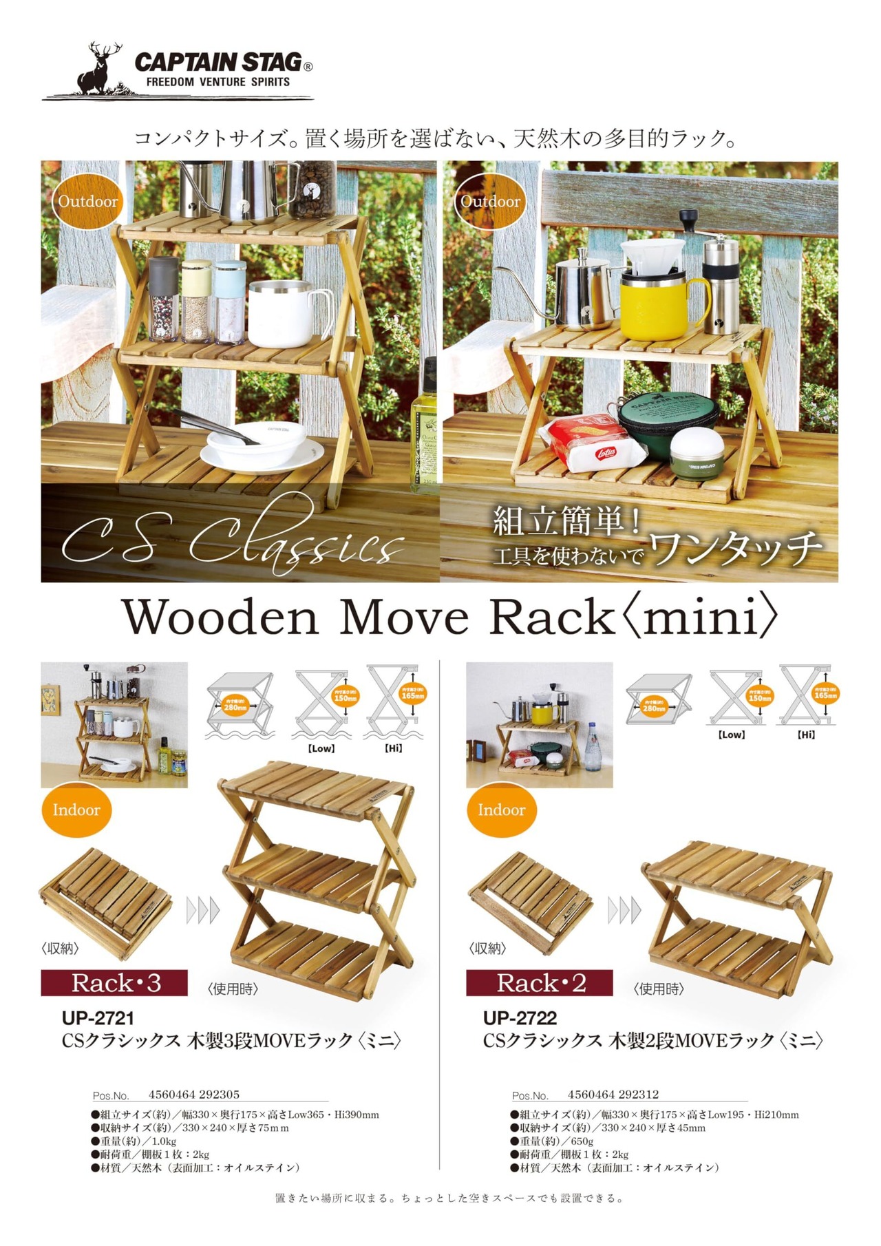 キャプテンスタッグ(CAPTAIN STAG) 木製ラック 収納棚 2段/3段 MOVEラック ミニ 幅330mm 高さ2階調節可能 CSクラシックス UP-2721/UP-2722