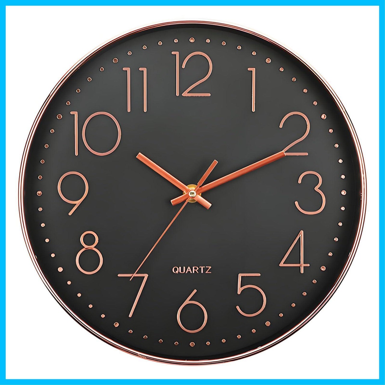 【新着商品】【Oblivi】掛け時計 電波時計 おしゃれ 北欧 連続秒針 静音 壁掛け時計 掛時計 自宅 寝室 部屋飾り 贈り物 インテリア 大数字 見やすい 30cm(ブラックローズゴールド)