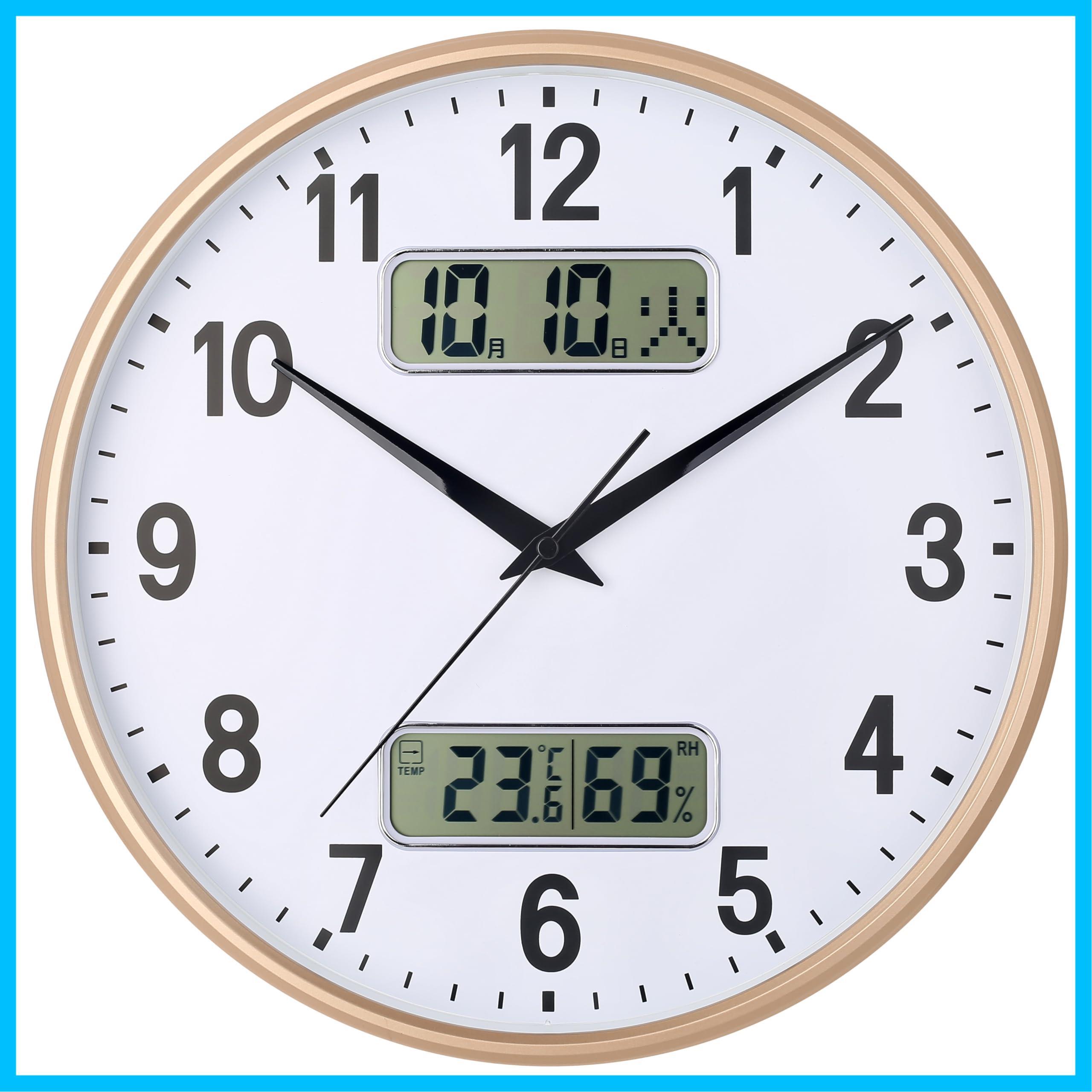 掛け時計 時計 壁掛け 電波時計 静音 温度 湿度 温湿度計 日付 カレンダー 曜日 夜間秒針停止 アナログ自動受信 自宅 寝室 部屋飾り 贈り物 インテリア 大数字 見やすい