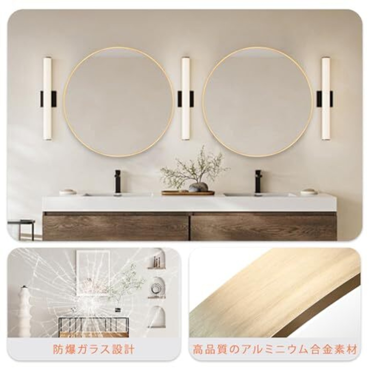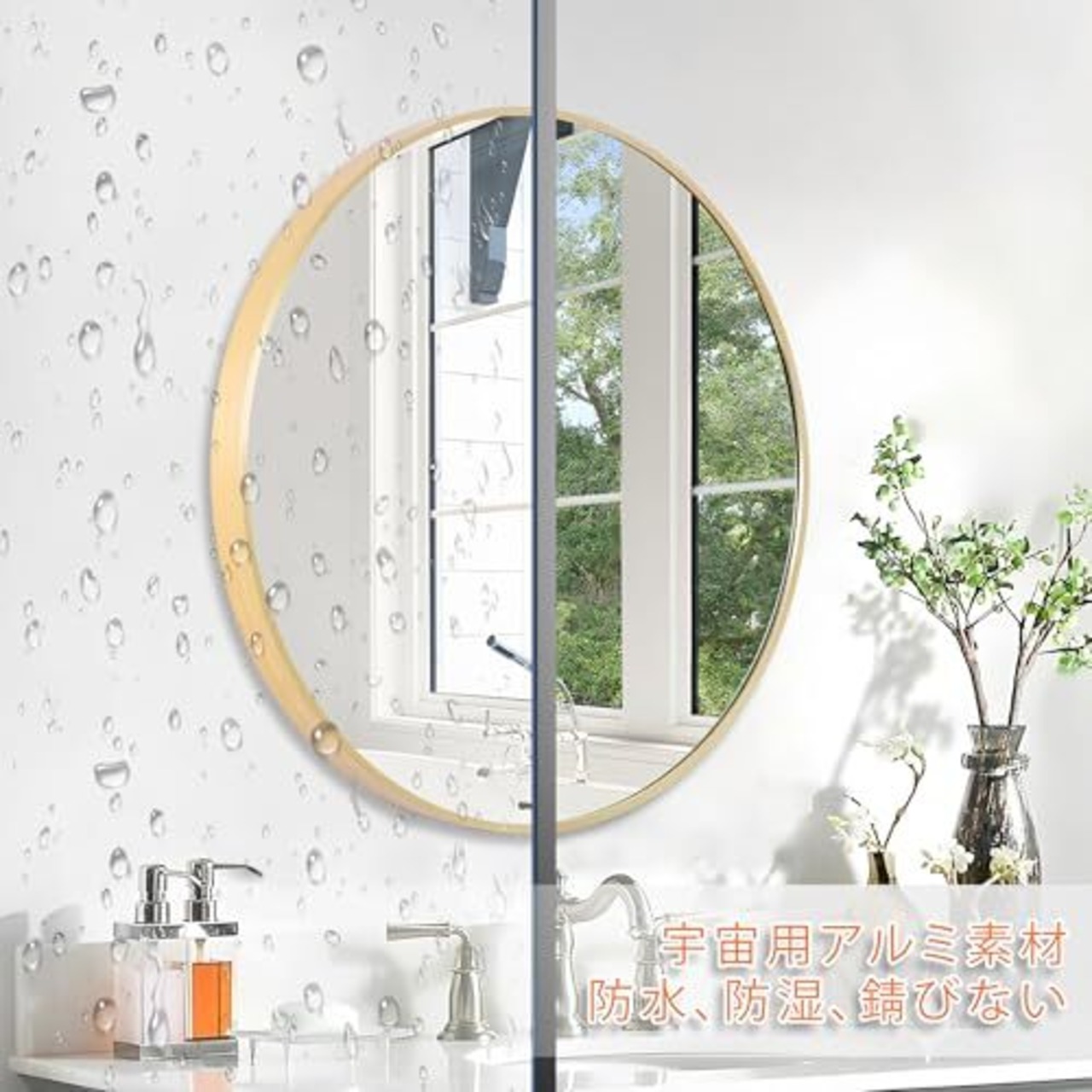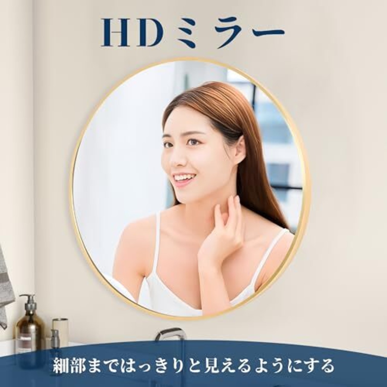 【おしゃれなフレームデザイン】丸い鏡の裏は鉛と銅を含まないアルミフレーム素材を使用し、バスルームのような湿度の高い環境でも使用できます。フレームの設計は十分に堅牢であり、ミラーが破損したり損傷を受けたりすることを防ぎ、偶発的な衝突時には緩衝材として機能します。バスルーム、玄関、ドレッサー、リビングルームなど、様々な場所で使用できます。