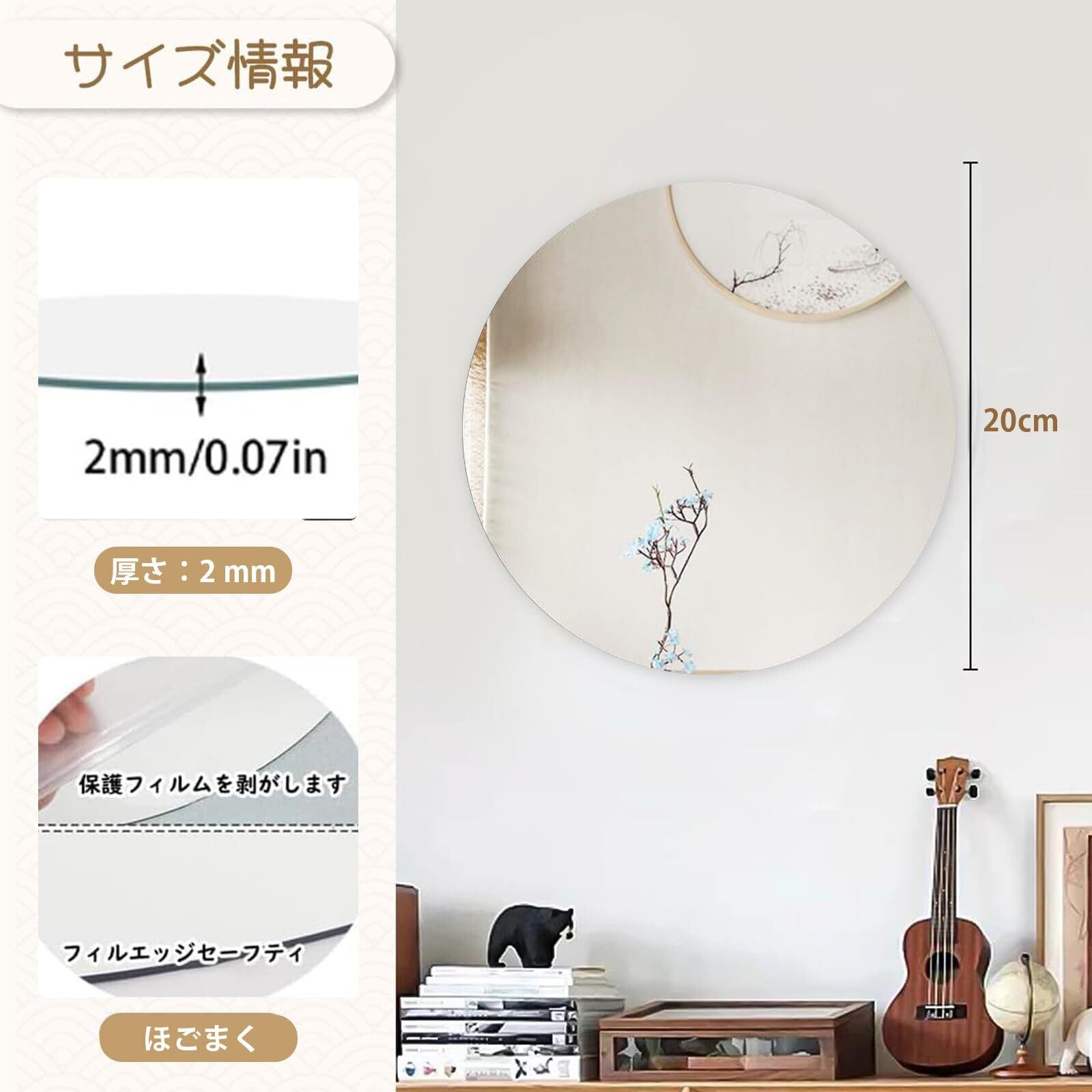 1個-20*20 厚さ2mm鏡 ミラー 壁掛け鏡 壁掛けミラー 丸型ミラー ステッカー 鏡 ウォールミラー アルミフレーム 丸い姿見 洗面 化粧 洗面 化粧 軽量 HD鏡面