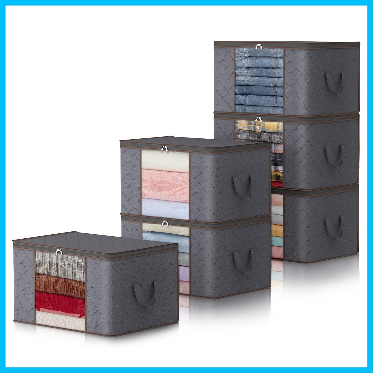 Lifewit 90L 衣装ケース 収納ボックス 衣類収納ケース 毛布 布団収納袋 洋服収納 押し入れ収納 通気性の良い不織布 持ち手 透明窓付き 大きく開く上部ファスナー 6個組 グレー 大容量(60長さ x 43幅 x 35高さ cm)