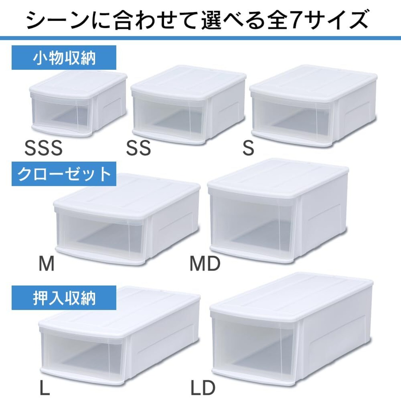 ●衣類収納などに便利なチェストです。●中身が見えるクリアタイプで、シーンを選ばず使えるシンプルなチェストです。●重ねた状態で引出しを引いた時の本体の傾き・持ち上がりを防ぐ為、天面に前倒れ防止加工を施しています。●積み重ねての使用時、ズレない形状です。