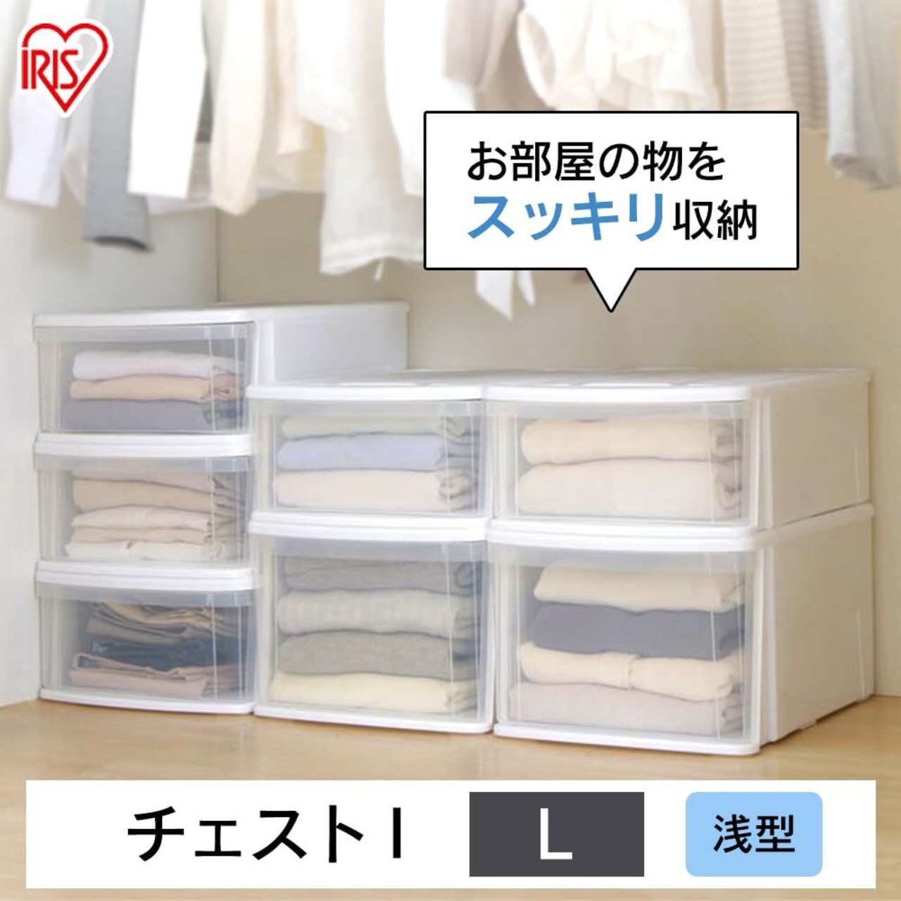 アイリスオーヤマ 収納 チェストI 日本製 幅37.6×奥行74×高さ21.2cm ホワイト/クリア L