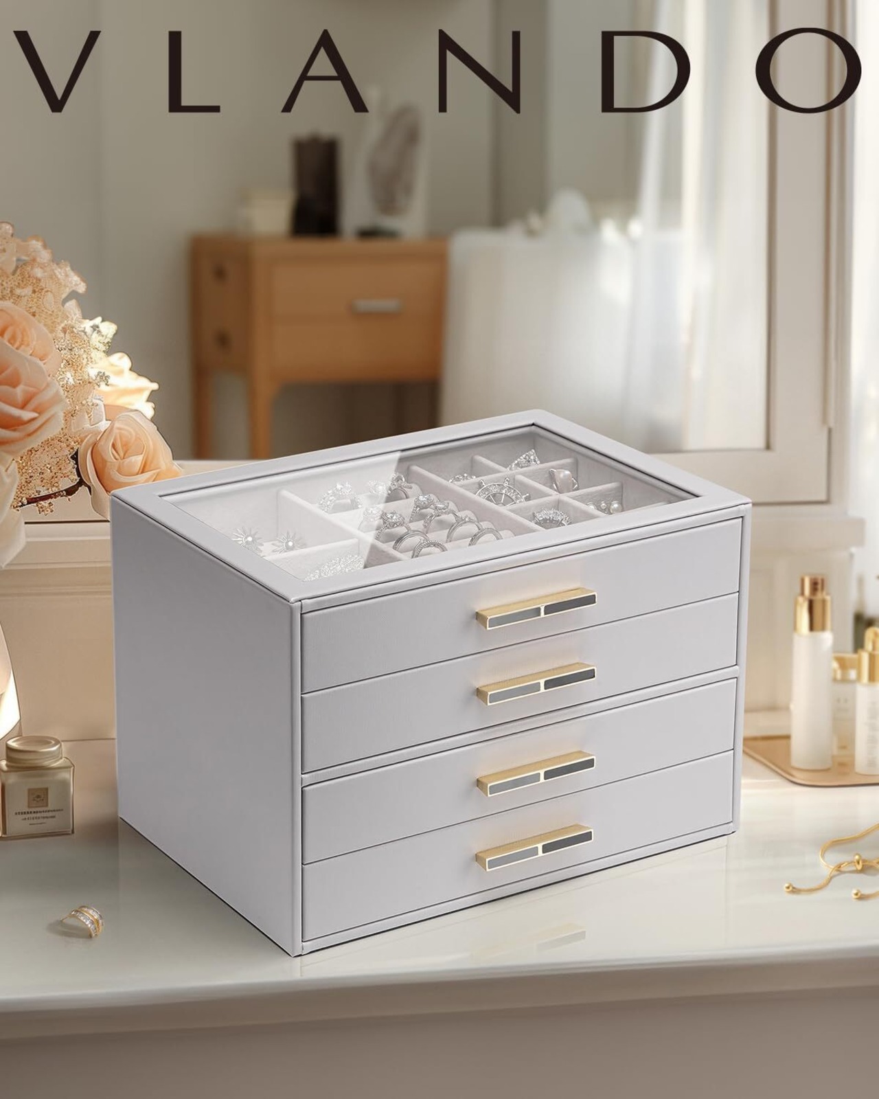 Vlando ジュエリーボックス 大容量 アクセサリーケース ジュエリー 収納 宝石箱 メイクボックス ピアス リング ネックレス イヤリング 小物入れ ボックス 引き出し ジュエリーバッグ レディース 彼女 女性 誕生日 記念日 プレゼント エレガント 人気 おしゃれ ジュエリーケース