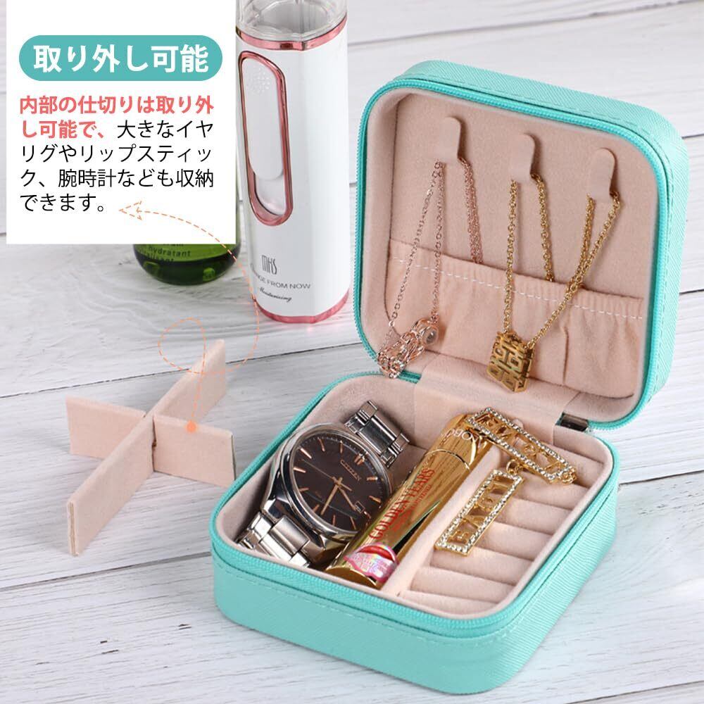 【小型ジュエリーボックス】機能的なトラベル収納ケースで、リング、イヤリング、ネックレス、ブレスレットなどのジュエリーを整理して持ち運ぶのに最適です。内部の仕切りは取り外し可能で、大きなイヤリングやリップスティック、腕時計なども収納できます。小物もきれいに整理整頓でき、旅行や日常使いに便利です。