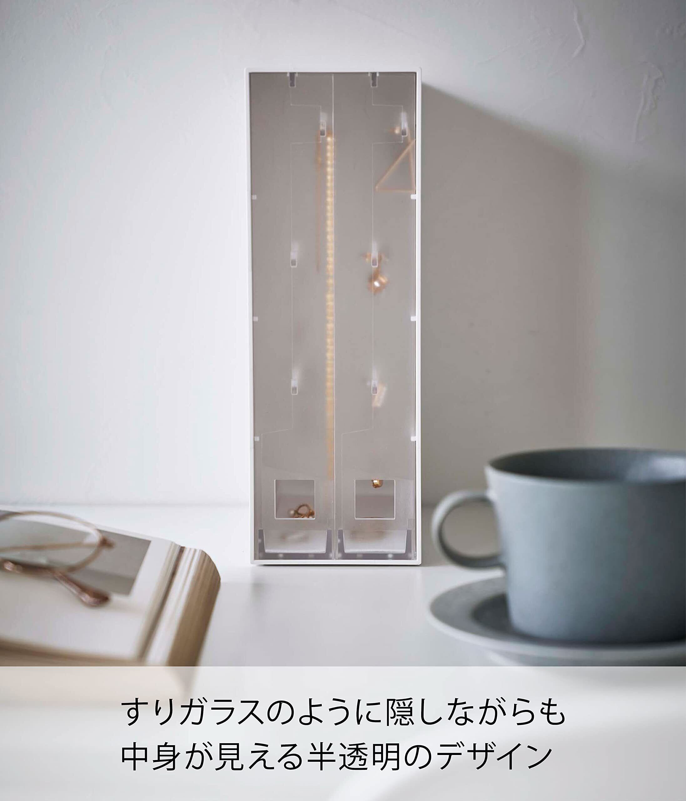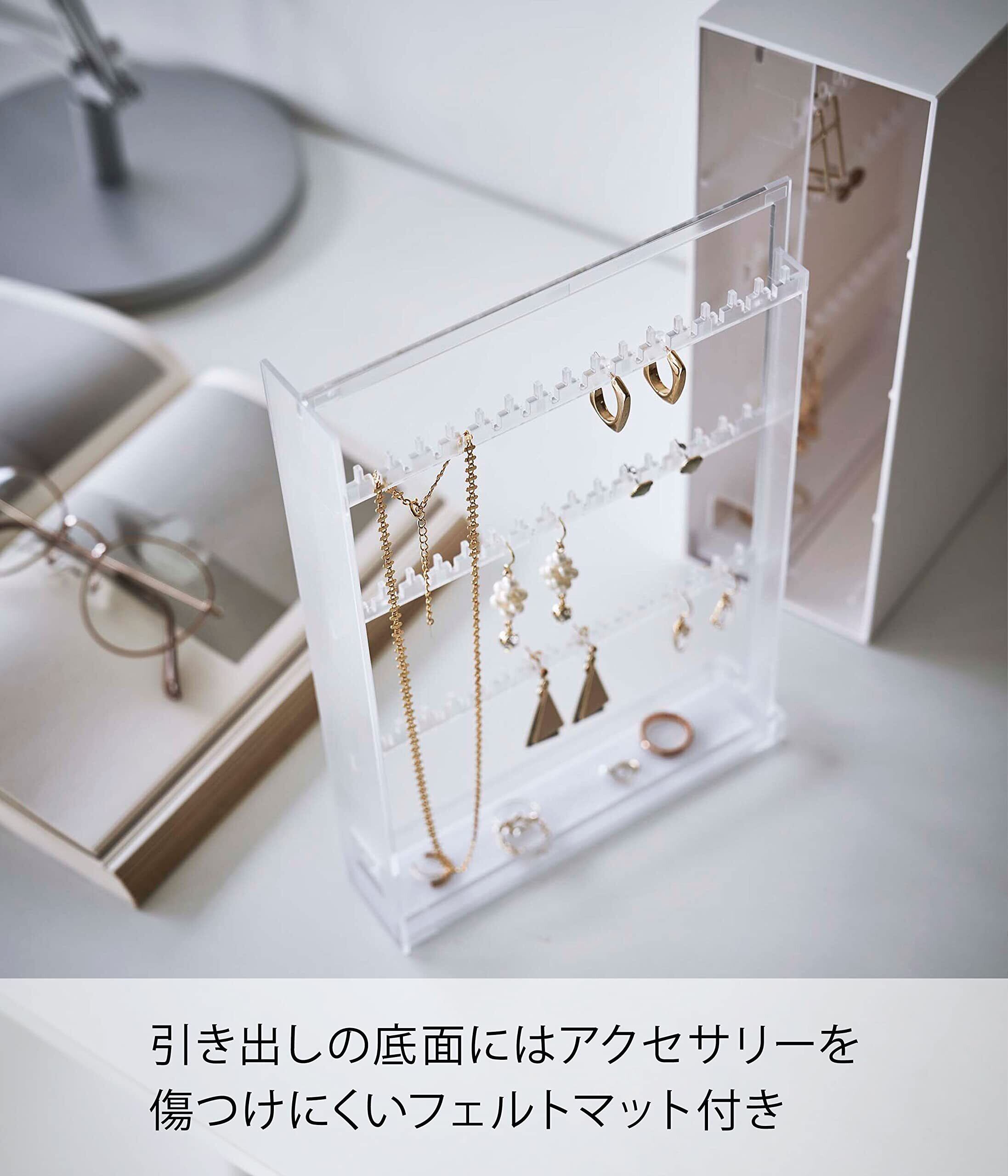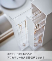 山崎実業(Yamazaki) ネックレス & ピアス 収納ケース ホワイト 約W8.8×D17.5×H25.3cm タワー tower 大容量 アクセサリー収納 引き出し 6131