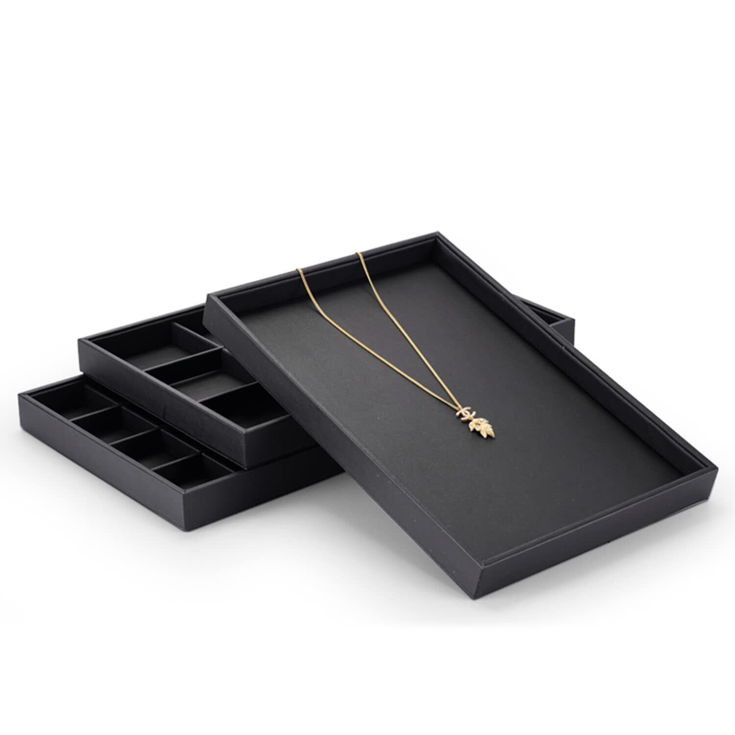 Oirlv ジュエリートレイ フラットトレイ PUレザー ネックレス ブレスレット 指輪 腕時計 ディスプレイ 収納 高級 おしゃれ 適格請求書に対応 P01701 (ブラック)