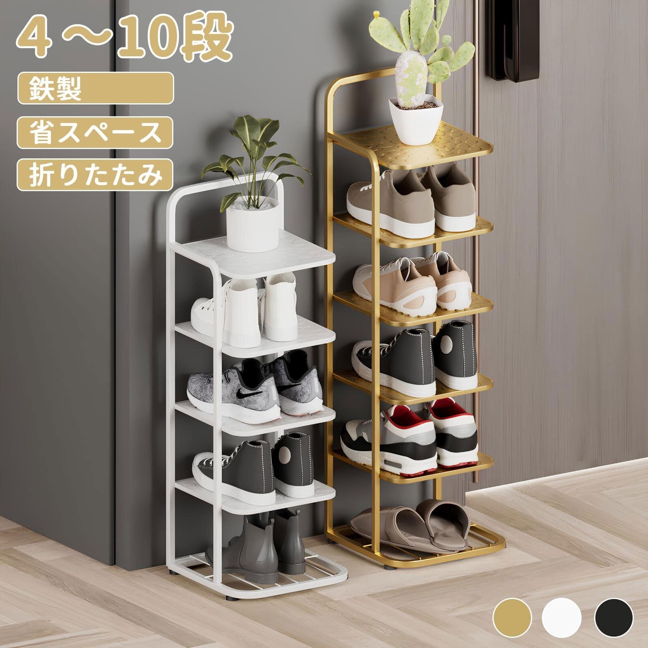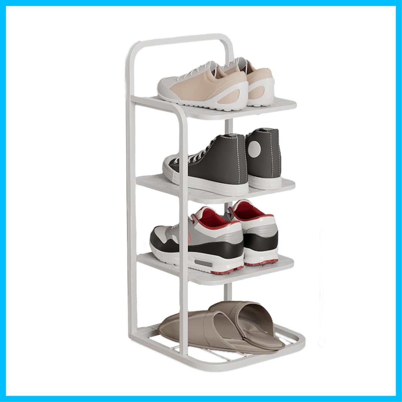 Risuppi シューズラック 省スペース スリム 7段 7足 鉄製 靴棚 玄関 おしゃれ コンパクト 下駄箱 靴収納 靴ラック 廊下 シンプル 25cm ひとり暮らし マンション 狭い 玄関 シューズケース スリッパラック (ホワイト,4段)