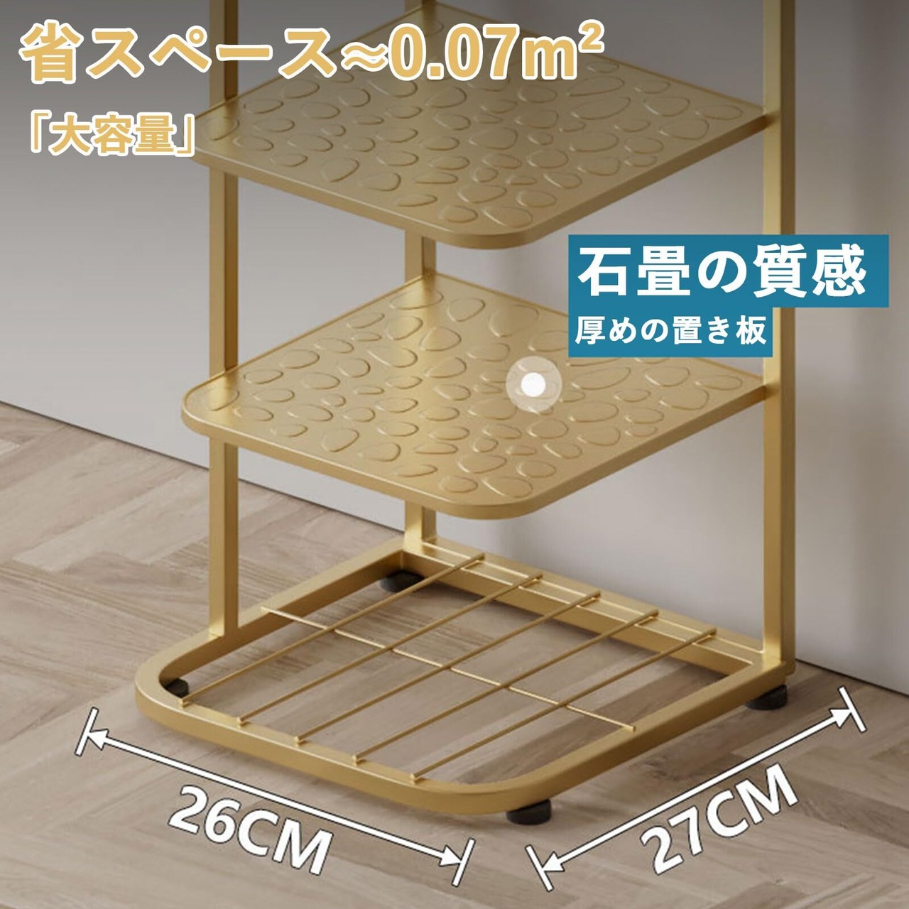 【繊細な金属の質感】 靴ラックは全体的に金属光沢があり、シンプルで豪華です。耐候性を高めるため、ニス塗装を仕上げており、カビに強い、長くお使いいただけます。ちょっとした汚れは雑巾で拭けさるのでお手入れやすいです。