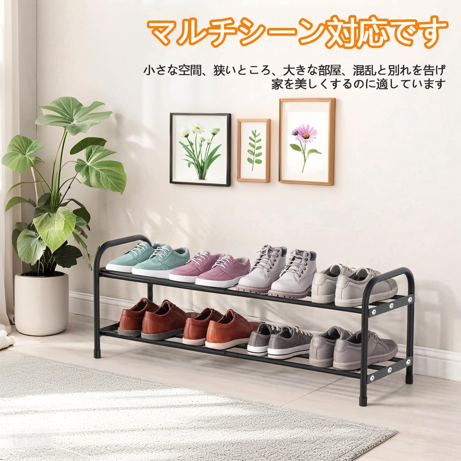 4.【モダンで多芸多才なスタイル】シンプル シューズラック 省スペースの靴棚 でどんなデコレーションともよく合います。 クローゼットの整理またはエントリーレベルの靴保管のニーズに合わせて、2 段、3 段、または垂直の靴棚オプションから選択します。