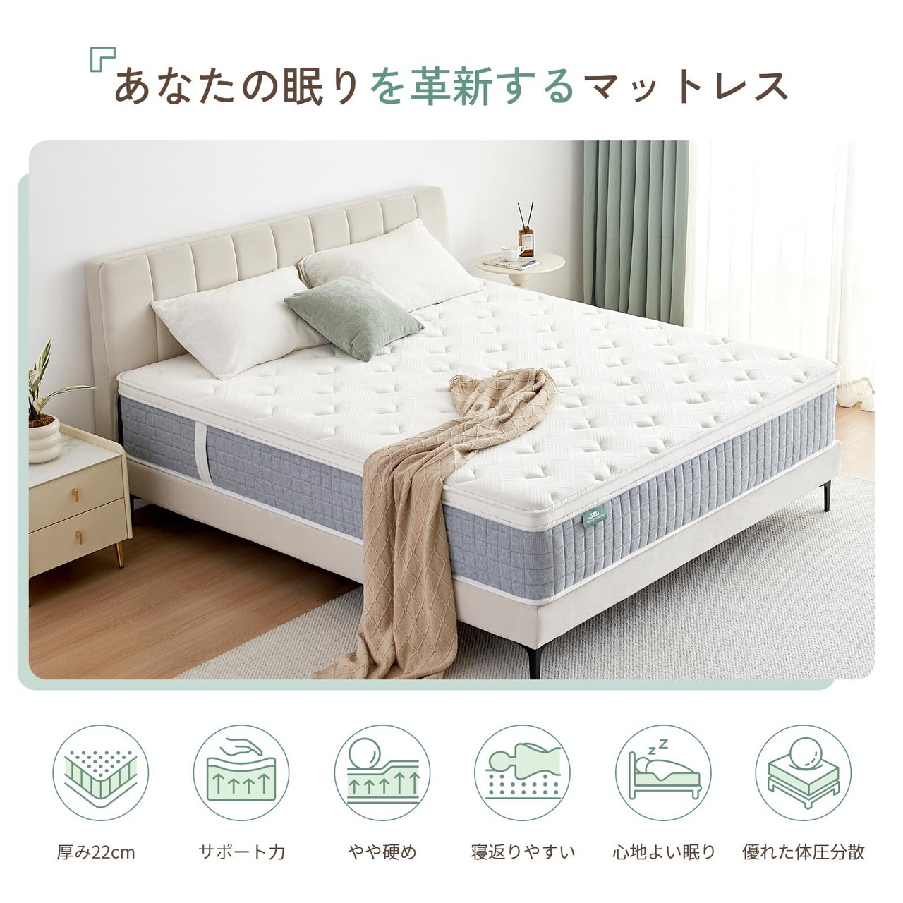 【最高の寝心地】本マットレスは7層構造を採用し、豊富な素材を使用した厚さ24cmの高反発マットレスです。ポケットコイルは独立して配置されており、理想的な寝姿勢を維持します。振動が伝わりにくく、静かな夜の睡眠を実現します。