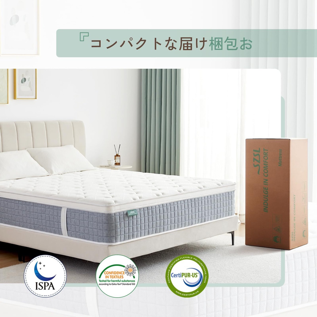 【特価商品】SZSL INDULGE IN COMFORT マットレス シングル 厚さ24cm ポケットコイルマットレス 高反発 ベッドマットレス 高級スプリングマットレス 体圧分散 通気性 静音構造 快適寝心地 底付き感無し 持ち運び便利 圧縮梱包(160×195×24cm)