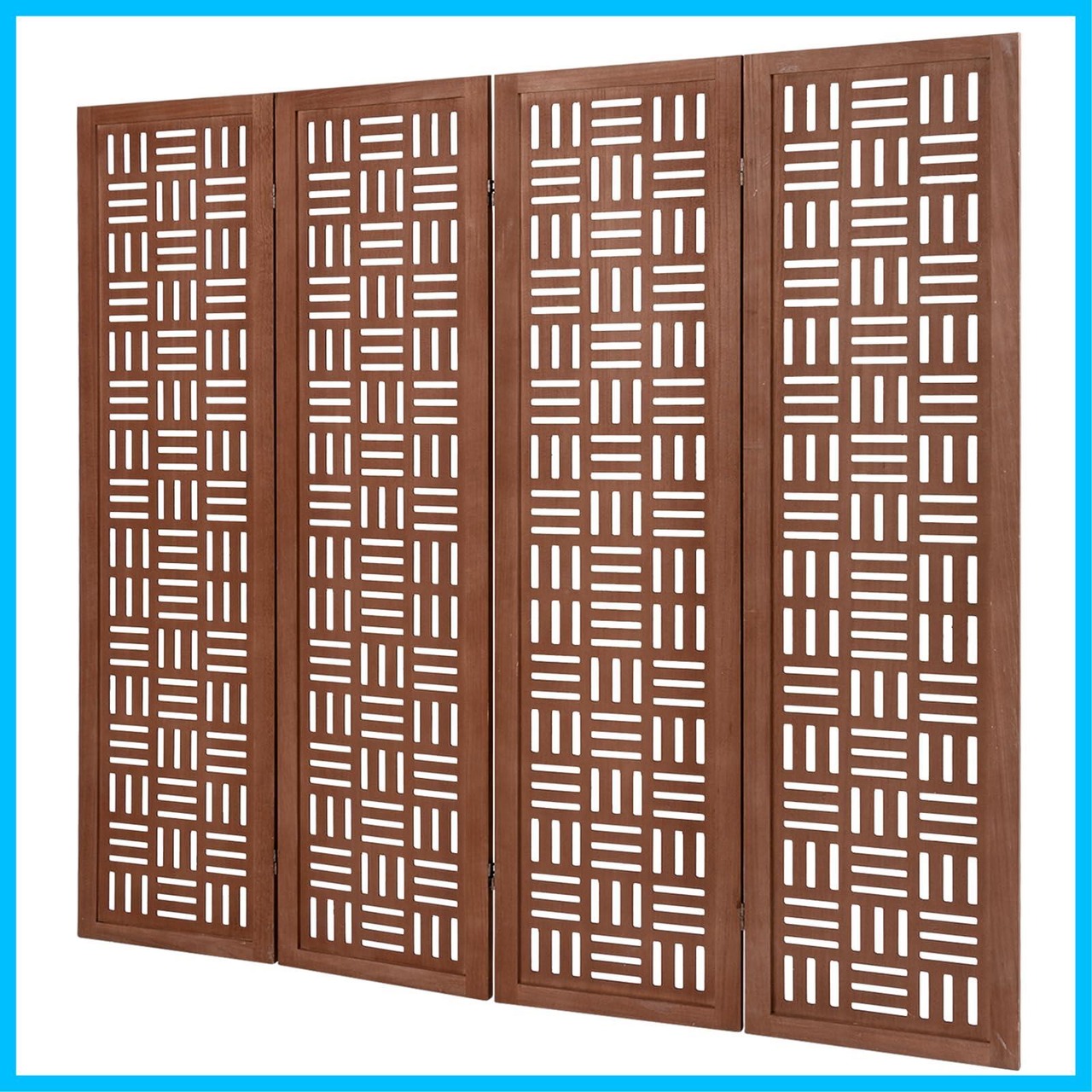 GYMAX パーテーション 4連 折りたたみ 桐木製 幅160 x奥行2 x高さ165 cm 間仕切り おしゃれ 透かし彫りデザイン ボヘミアン調 天然木 2段ヒンジで角度自由調節 組立不要 コンパクト収納 リビング 書斎 オフィス 和室 レストラン 寝室用