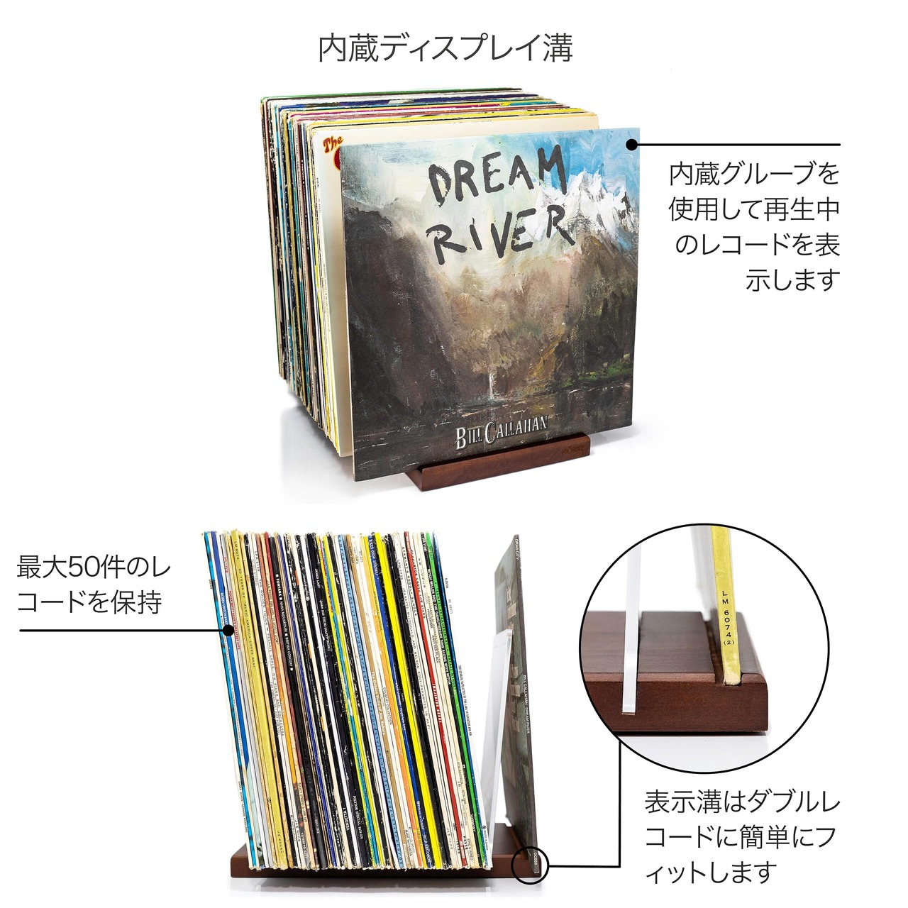 もう滑ることはありません: インテリジェントな V 溝設計により、レコードをセクションで垂直に保ちます。