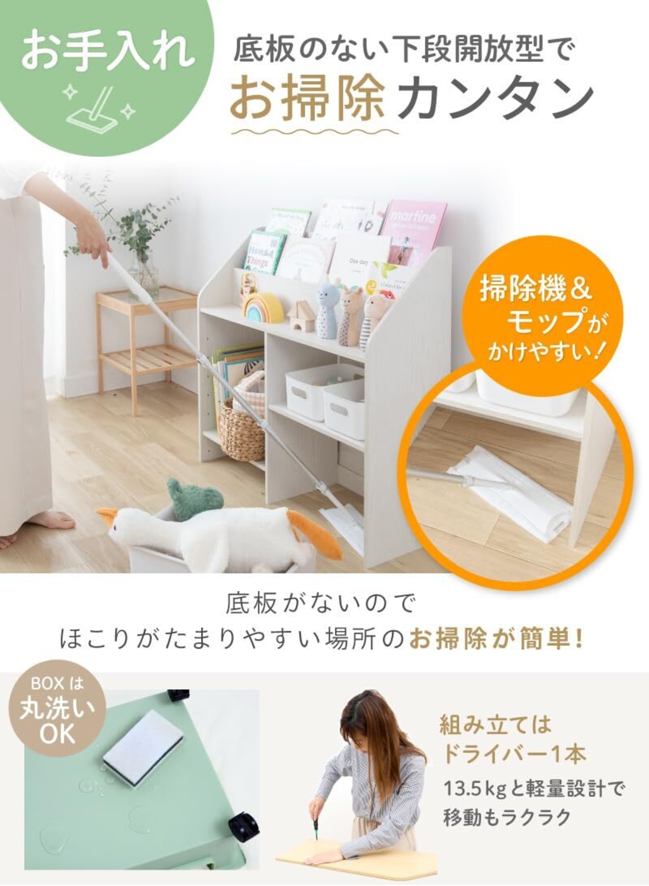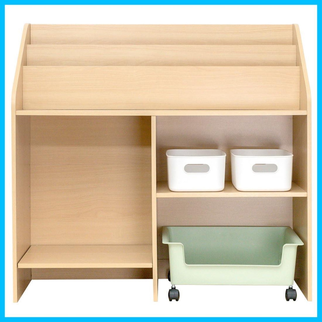 【特価商品】(ケラッタ) 絵本ラック おもちゃ 収納 本棚 子供 見える収納でお片づけ習慣を育む 幅82cm 軽量 木製 知育家具 (d. ラック(ナチュラル)&ボックス(グリーン), ラック&ボックスセット)