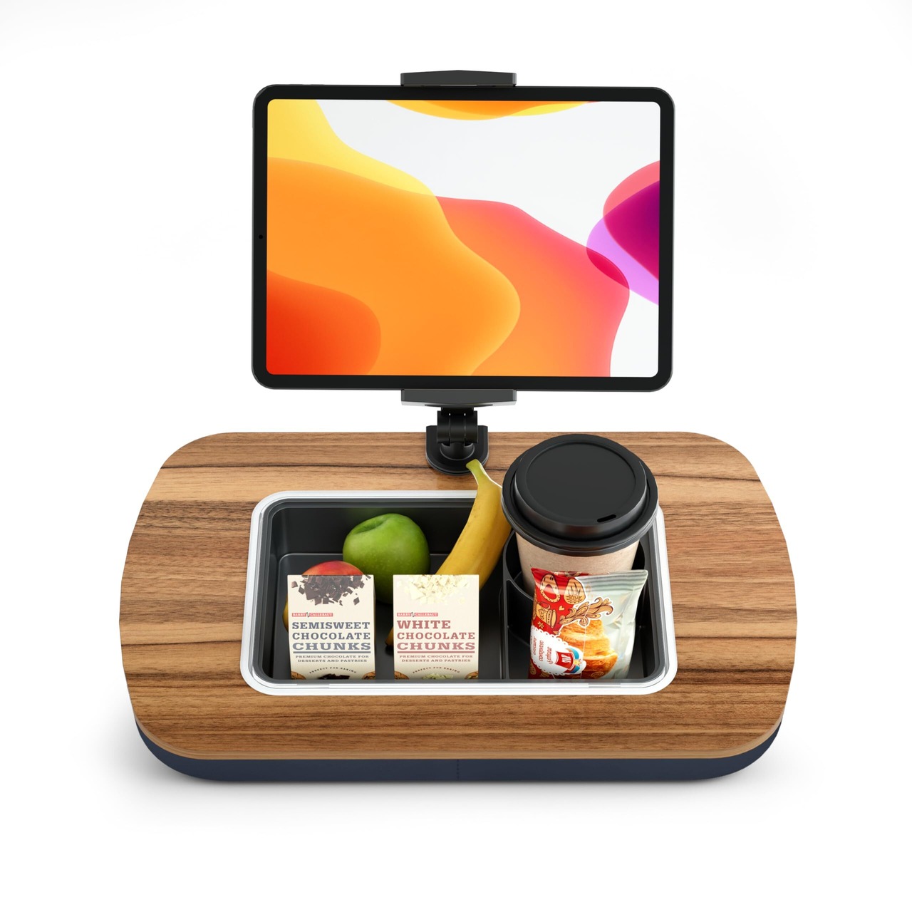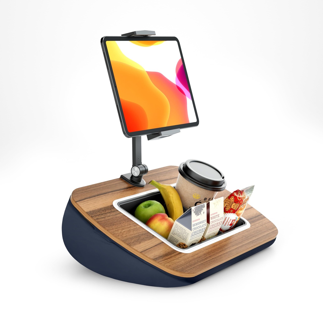 LOE(ロエ) 膝上テーブル カップホルダー付き テーブルクッション 車中泊・おやつ・お絵かき対応 ビーズクッション膝上デスク (ネイビー)