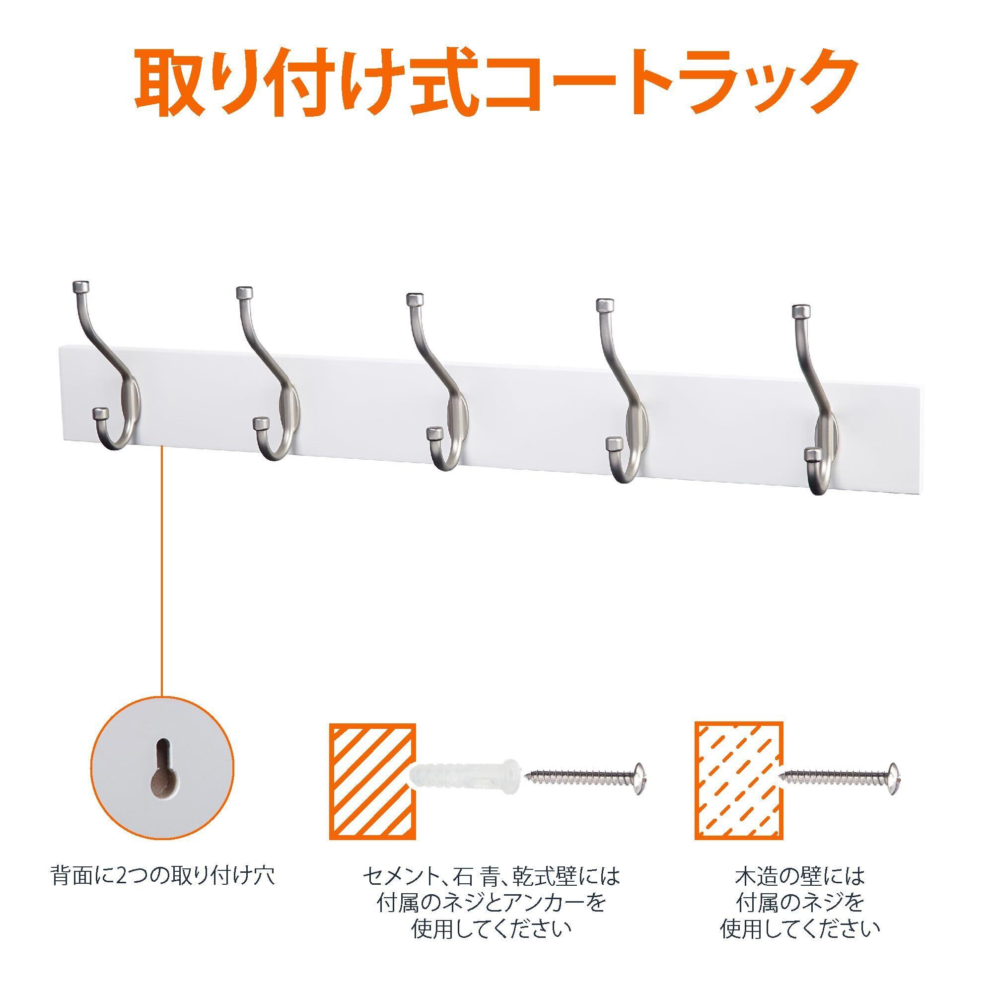 ベーシック 壁掛けフック ウォールハンガー 壁取り付け式 5フック ビンテージ 長方形 ホワイト